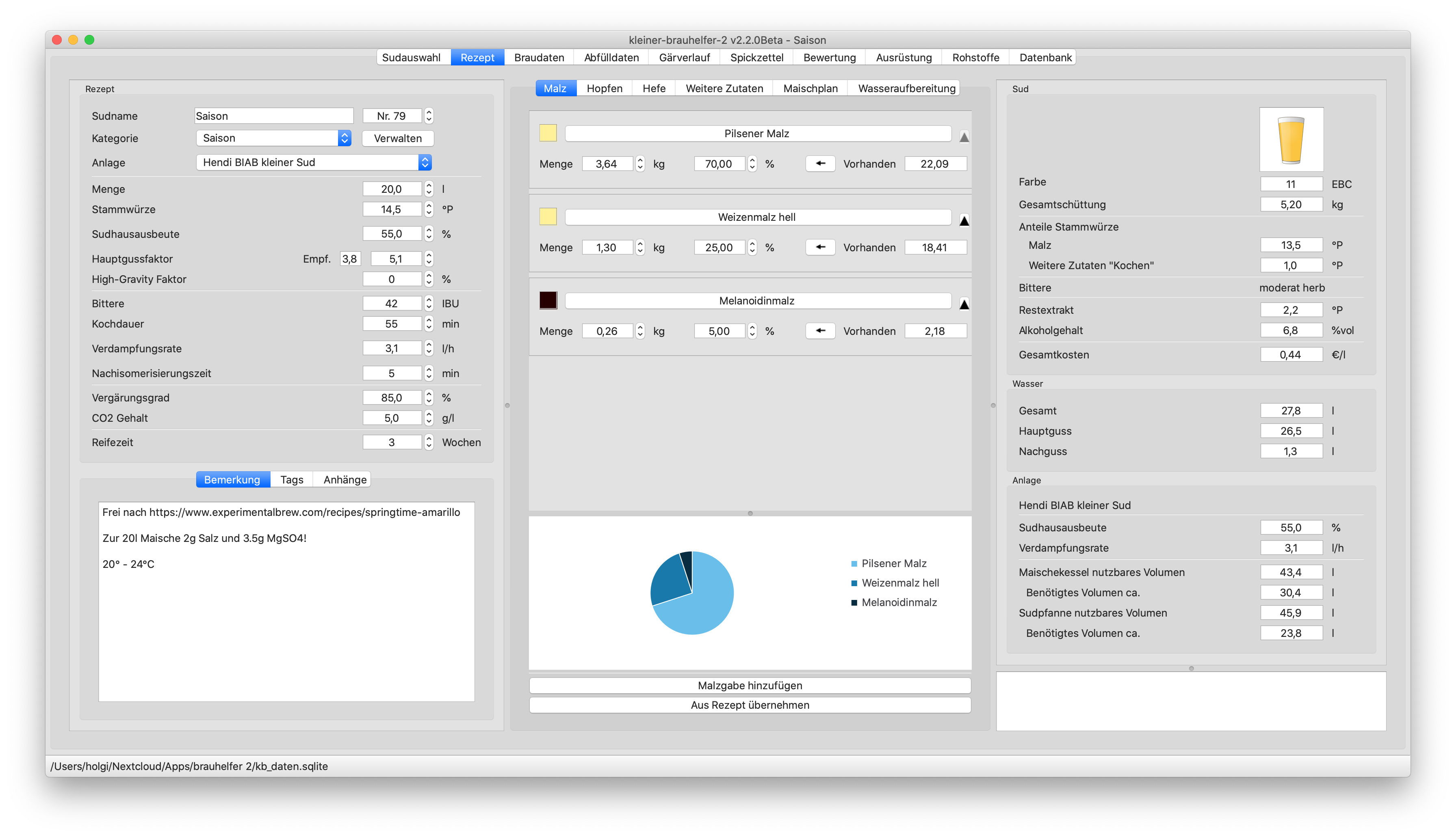 BrauLu hat geschrieben: Donnerstag 9. Juli 2020, 07:10 Apropos: die pH Werte der verwendeten Malze habe ich für das Rezept eingetragen, der Maische pH wurde aber nicht berechnet. Dann habe ich auch für die nicht enthaltenen Malze pH Werte eingetragen, das half auch nichts. Erst wie ich auf den Auswahlkopf für Malz im Rezept bei einem bereits eingetragenen Malz klickte und wieder geschlossen habe, wurde der pH in der Wasseraufbereitung berechnet. Dieses Rezept war eine Kopie eines von der vorigen KBH 2.x.x Version