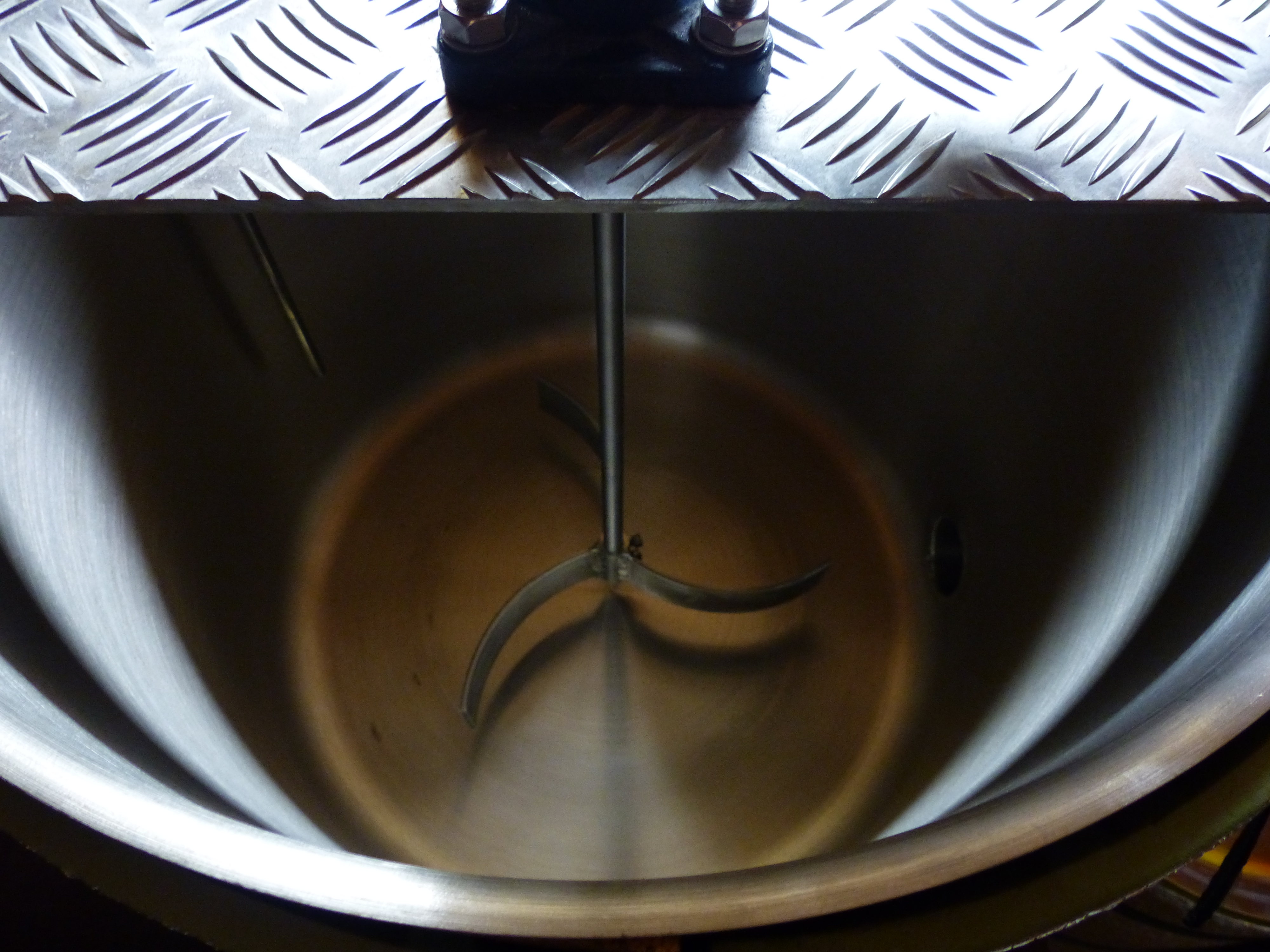 Wie gesagt, es ist ein alter Edelstahlkessel aus einer Molkerei, in dem vorher Fruchtkonzentrat befördert wurde. Geheizt wird mit einem Paellabrenner. Aufgrund der Steinwolldämmung ist wallendes Kochen der ca. 250 l gerade so möglich. Gebraut wird wegen der Gasbefeuerung in der Garage.