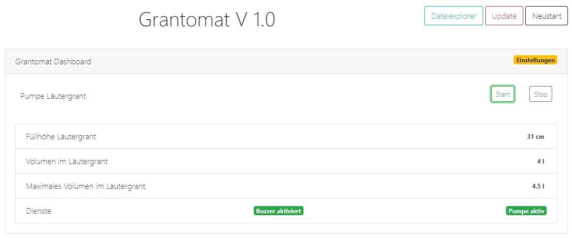Das MQTTDevice schaltet je nach Füllstand automatisch eine Pumpe. Eine Alarmfunktion ab 90% Füllung im Läutergrant kann aktiviert werden. Der Name Grantomat klingt granTios, ist aber eigentlich nur ein Mini-Helfer