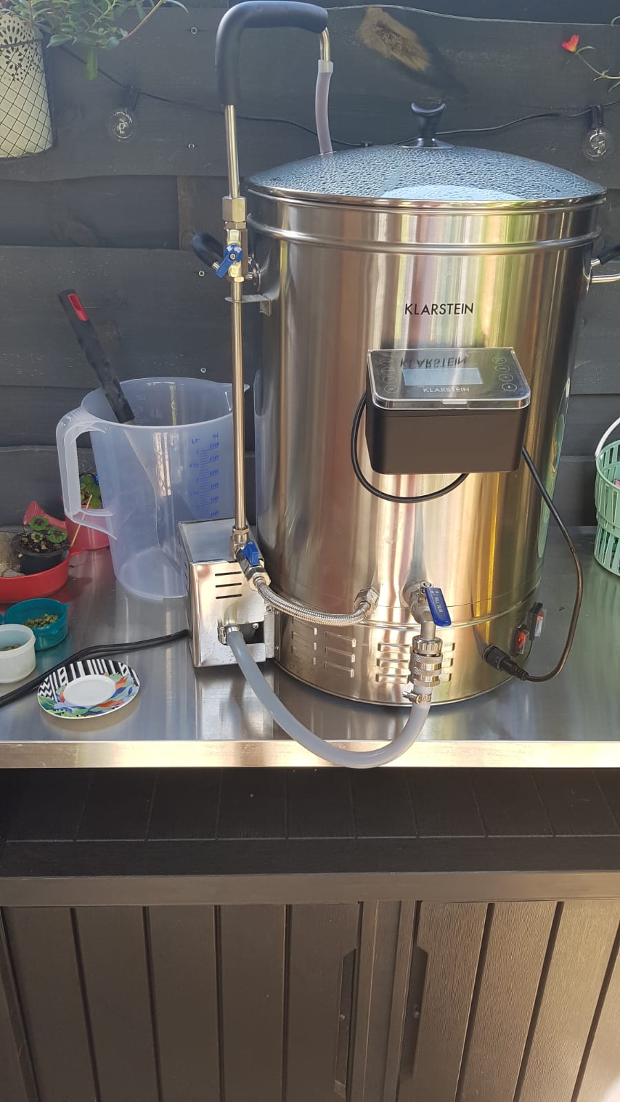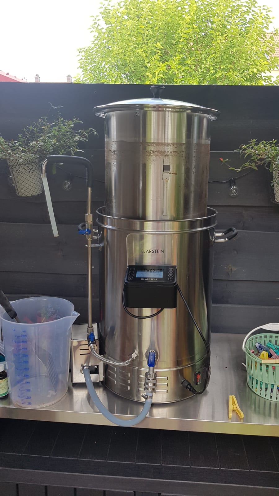Als 2tes habe ich getestet wieviel Wasser (später Würze) verdampfen wird beim Hopfenkochen. Dafür habe ich 20l für 1 Stunde gekocht und anschließend abgeschöpft und geprüft wieviel noch rauskam.