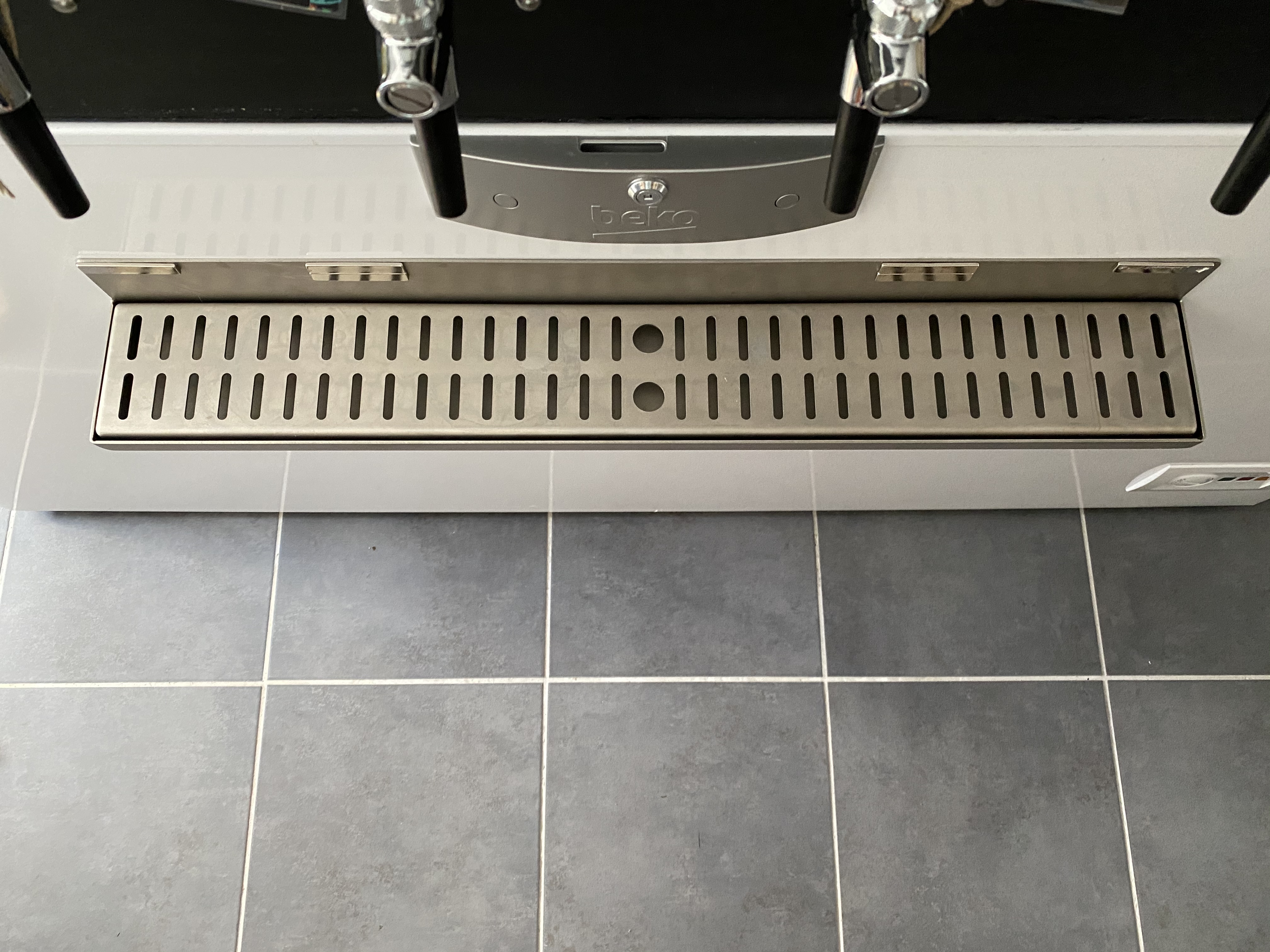 Wie gesagt, ich hab den Keezer mit dem Tropfblech gebraucht gekauft. Das Tropfblech wurde von einem Bekannten des Vorbesitzers angefertigt.