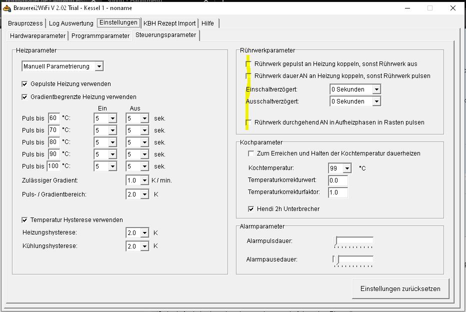 Habe zB die Hacken für die Rührwerk/Heizung Kopplung gesetzt... aber auch ohne Erfolg.