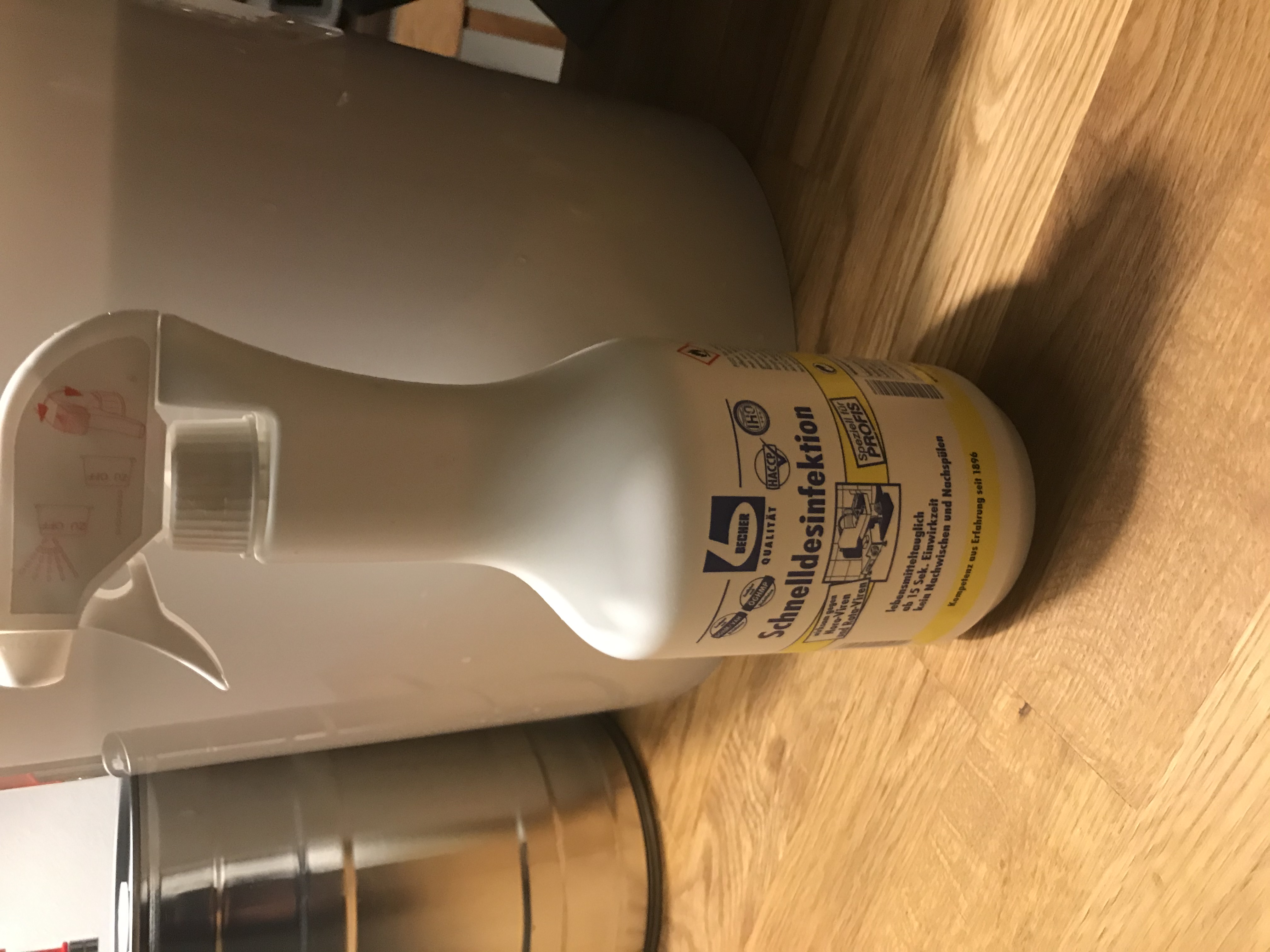 Alle Kleinteile wie Kronkorken, Auslaufhahn, Abfüllröhrchen etc. Werden von mit der Schnelldesinfektion desinfiziert und nach 3-5 Minuten nochmal mit warmem Wasser abgespült.