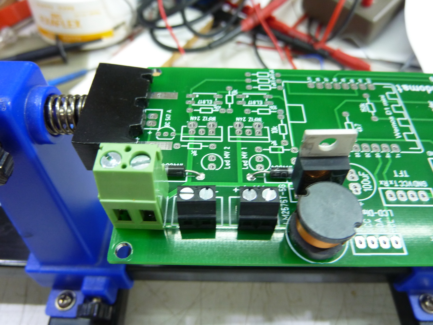 Und hier schon relativ weit fortgeschrittene Bestückung, fehlt eigentlich nur noch ein paar Widerstände, der Wemos und der zweite MosFet