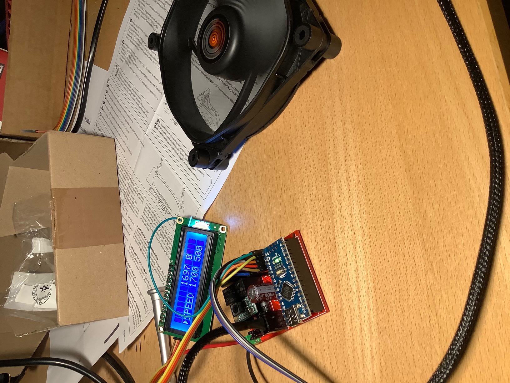 Das Relais schaltet zwischen der Versorgungsspannung und der Spannung vom Regler um. Damit bekommt der Lüfter unterhalb eines bestimmten Sollwertes nicht mehr die volle Spannung und man kann mit den Highspeed auch sehr langsam drehen.