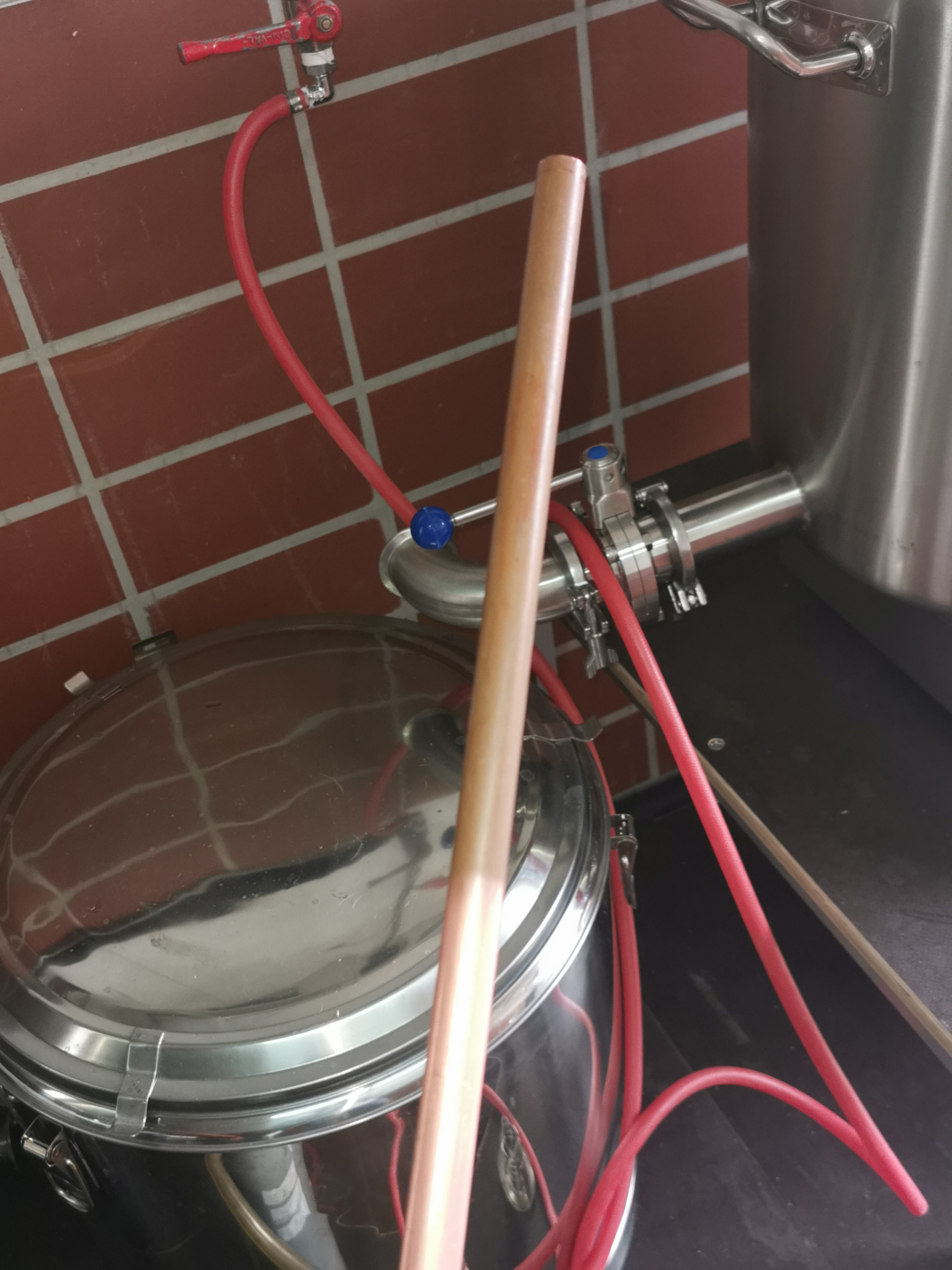 Da ich noch keinen Zapfkopf für Serienschaltung habe, hatte ich ein Kupferrohr als Reinigungslanze verwendet. Anhand der am Rohr verbliebenen Oxidschicht, konnte man sehr schön erkennen, dass das Steigrohr innerhalb des KEGs nicht mit der Reinigungsmittel in Kontakt kommt.