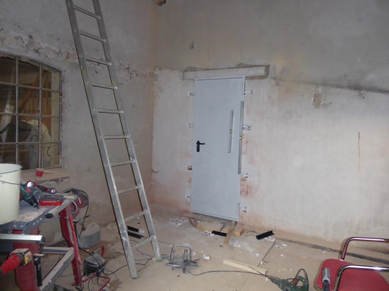 hier kommt Kapitel 2: Natürlich will man sein Brauhaus idealerweise nicht nur von außen, sondern auch direkt von der Wohnung aus betreten können. Es ist so praktisch zum Brauen nicht erst nach draußen durch den Regen (… oder schlimmeres) zu müssen. Problem ist nur die 60 cm starke Ziegelwand des Wohnhauses. Aber ach was Problem … an zwei Tagen (fast) erledigt.