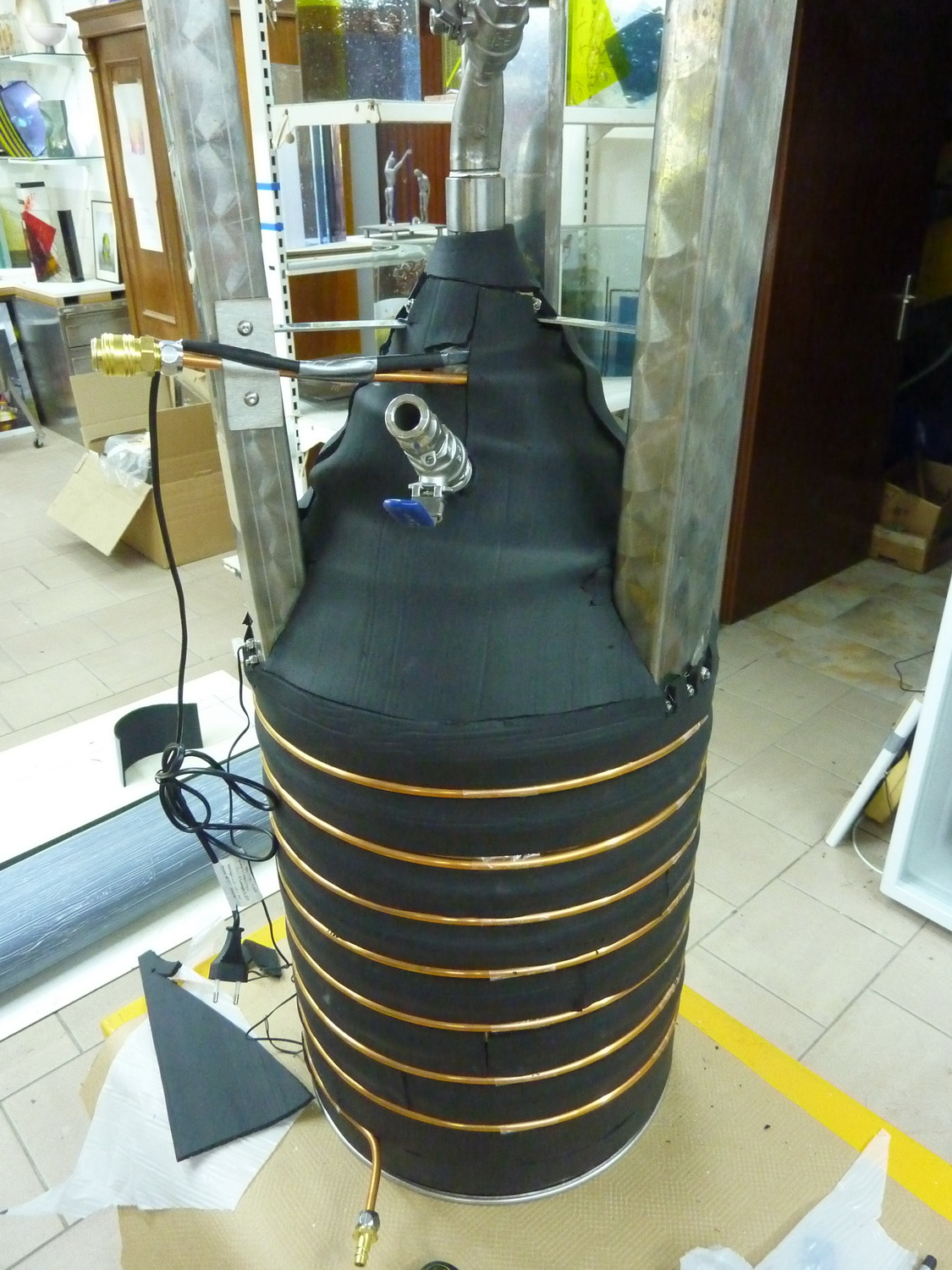 so und heute musse auch das 114 L ZKG dran glauben und wurde mit Mantelkühlung/Heizung ausgestattet und bekam noch eine Zusatzlage 12 mm Armaflex