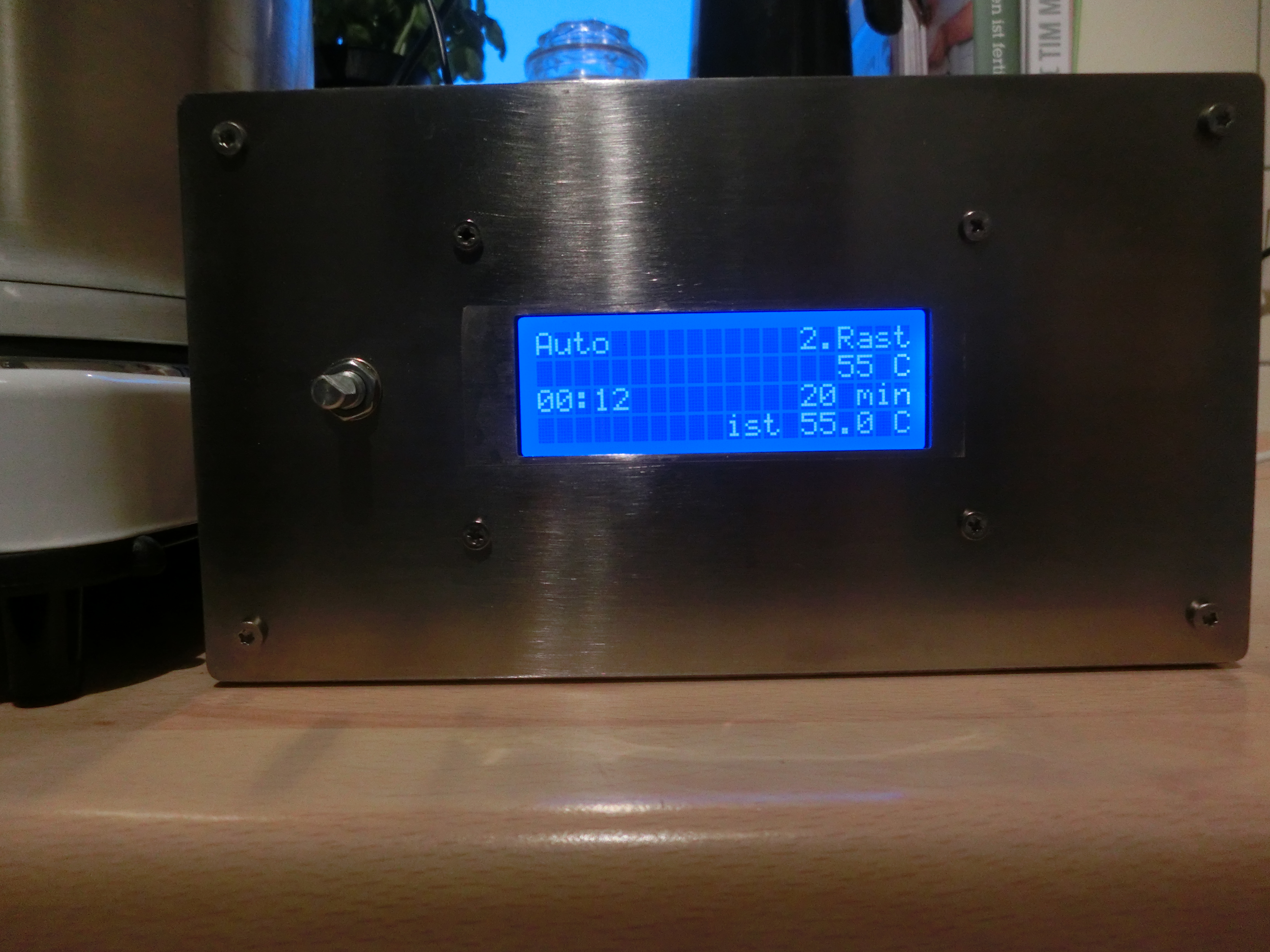 Unabhängig von der Stromquelle für den Arduino (Steckernetzteil 9 Volt 300mA, Netzteil 12V 3,5A, Autobatterie...) tritt folgender Fehler auf. Sobald die Relais angesteuert werden geht der Kontrast im Display nach unten und die Schrift verblasst zunehmend bis sie nicht mehr sichtbar ist. Wenn ich dann mit dem Poti nachregel wird sie wieder sichtbar. Allerdings kommt es dann vor, dass Werte sich Ändern (mal sind aus 55 Minuten Rast 555 geworden oder die Temeperaturanzeige flackert oder die Anordnung auf dem Display ist verschoben)