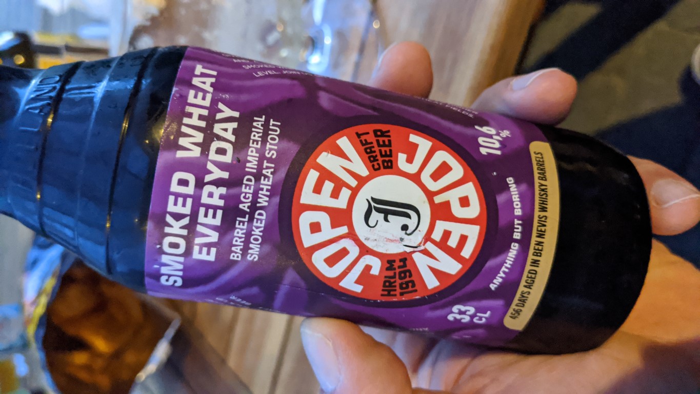 Cassis von Brekeriet, die mit die besten Sauerbiere in Schweden machen. Dieses mit schwarzen Johannisbeeren gestopfte war davor anderthalb Jahre in Rotweinfässern und kann sich mit den besten Belgiern messen, finde ich. :thumbsup
