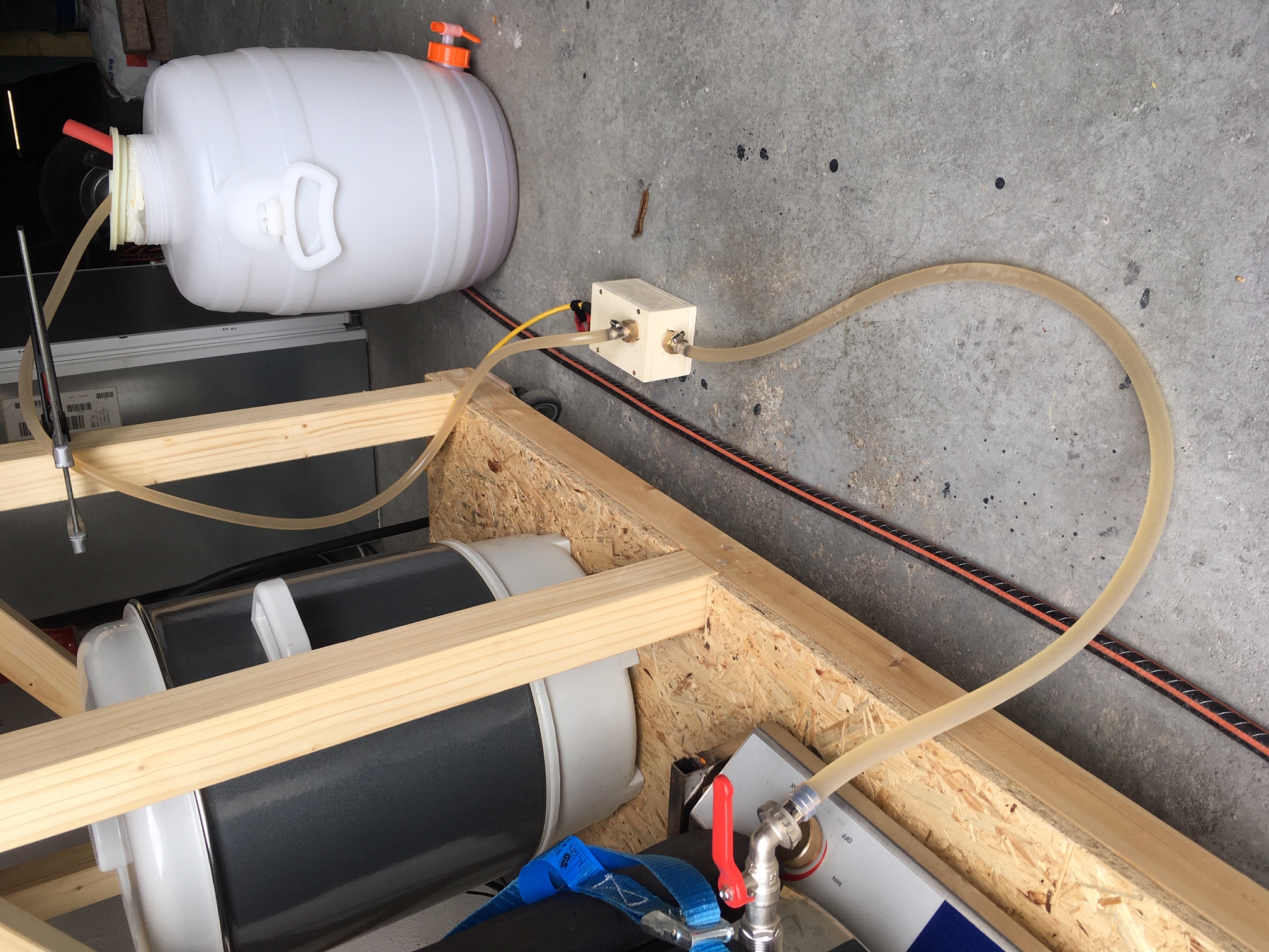 Im jetzigen Aufbau muss ich die Pumpe oberhalb des Einkochers platzieren. Irgendwann zieht sie leider zu viel Luft, dass oben kein Wasser mehr ankommt.