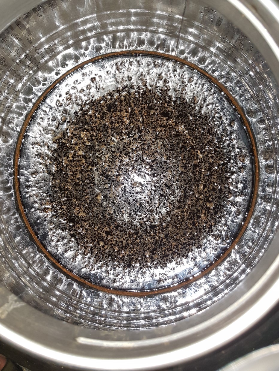 Beim Läutern hat mir mein schwäbischer Geiz leider ein Schnippchen geschlagen, da ich das Läutern nicht beendet habe als ich die Zielstammwürze im Topf erreicht habe und das Glattwasser noch über 9° Plato hatte, habe ich weitergemacht.