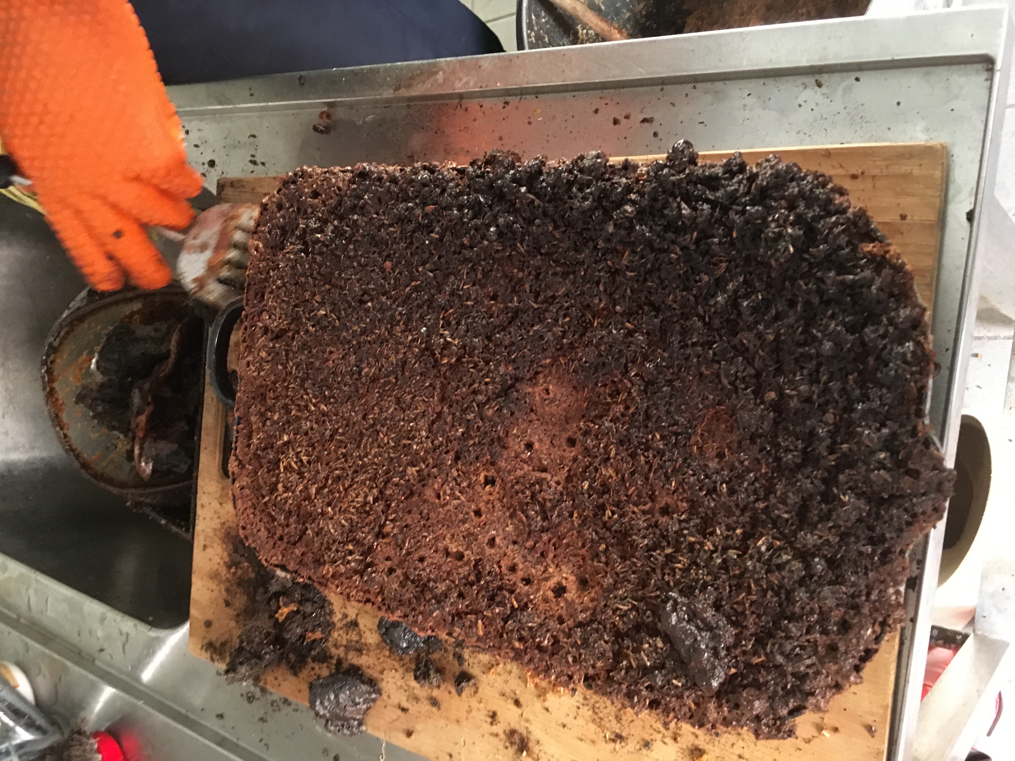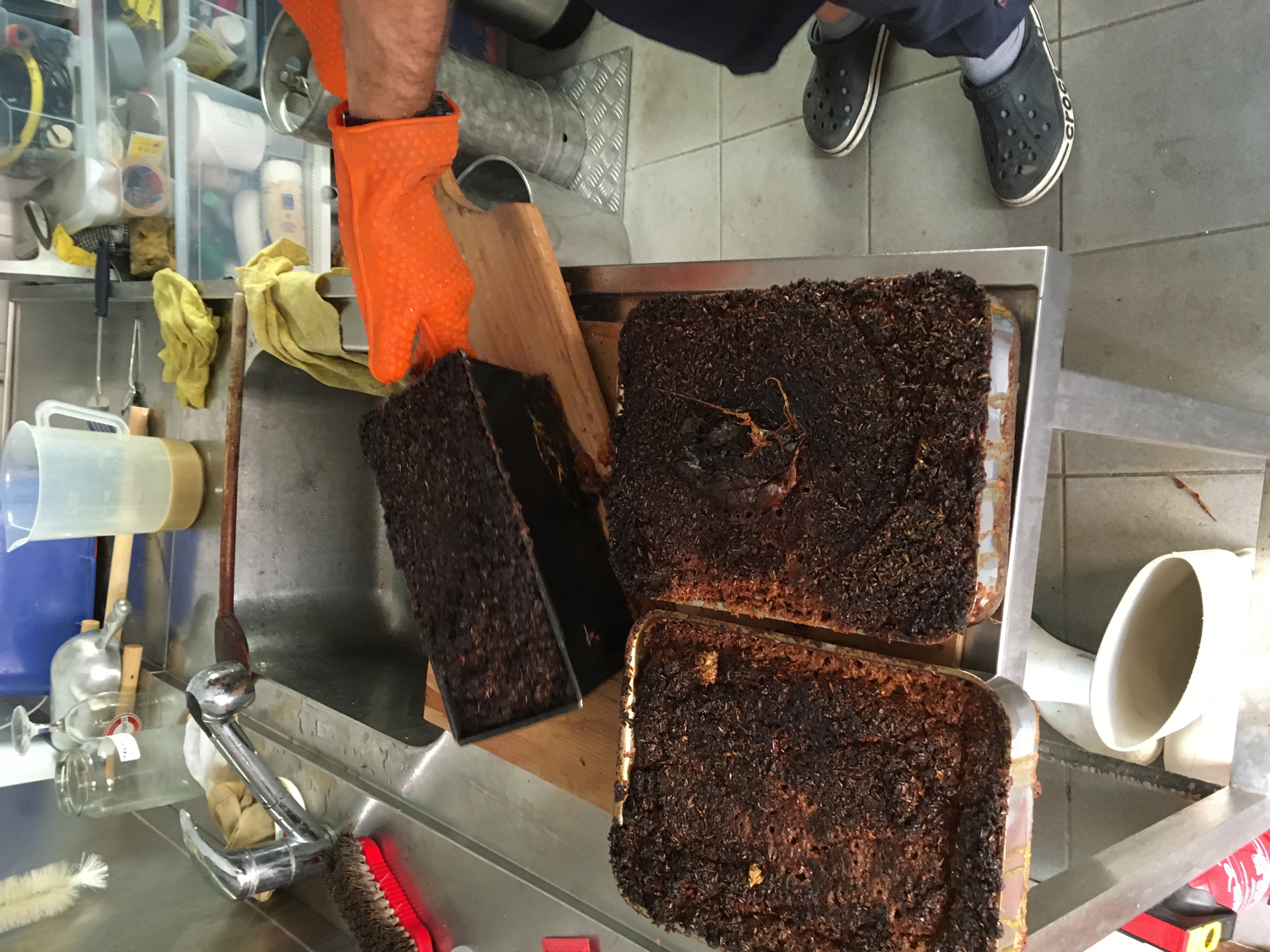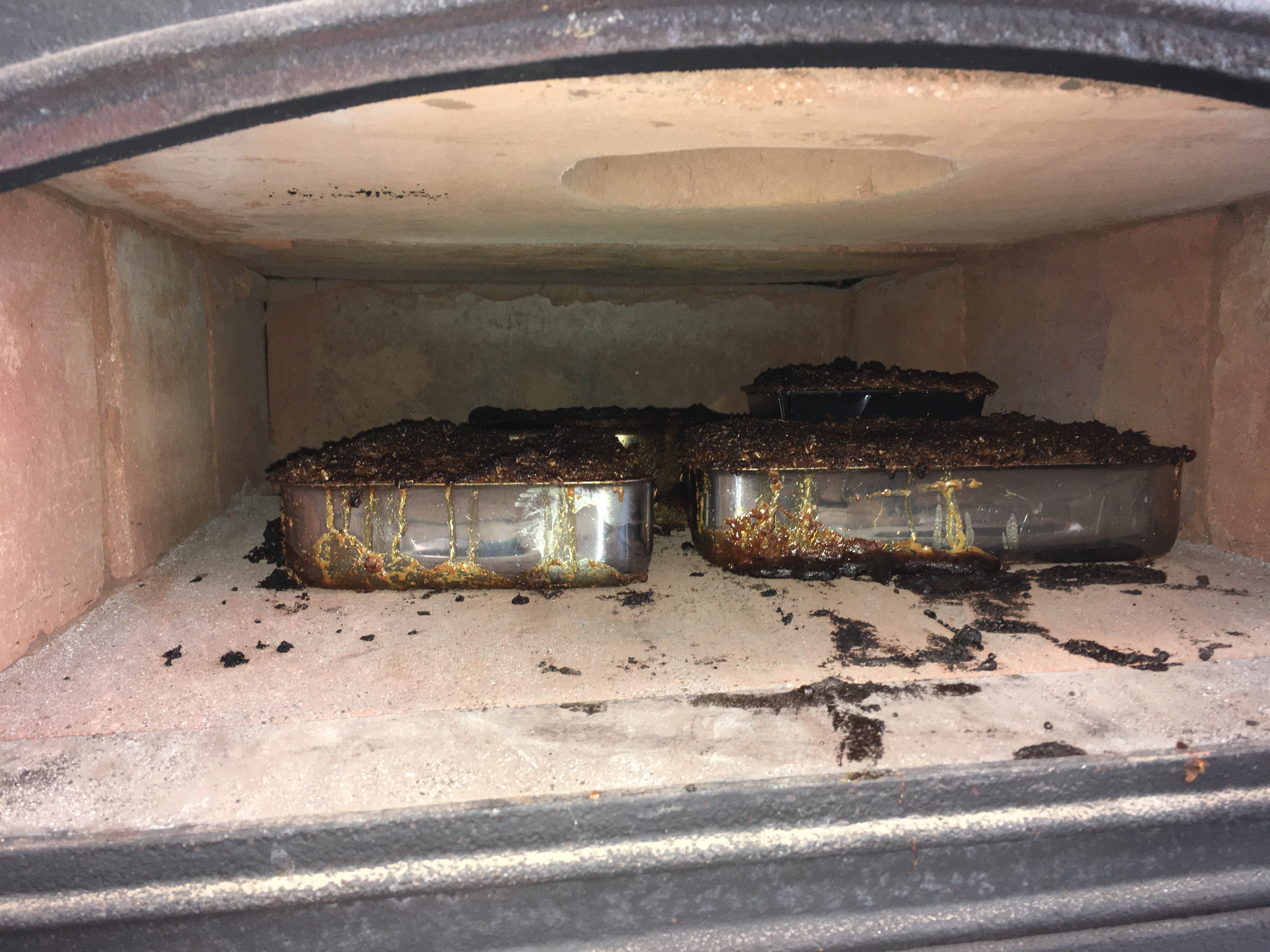 Dann wurde der Ofen ausgeräumt, die Maische in alle verfügbaren feuerfesten Gefäße eingefüllt und ins Warme verbracht.