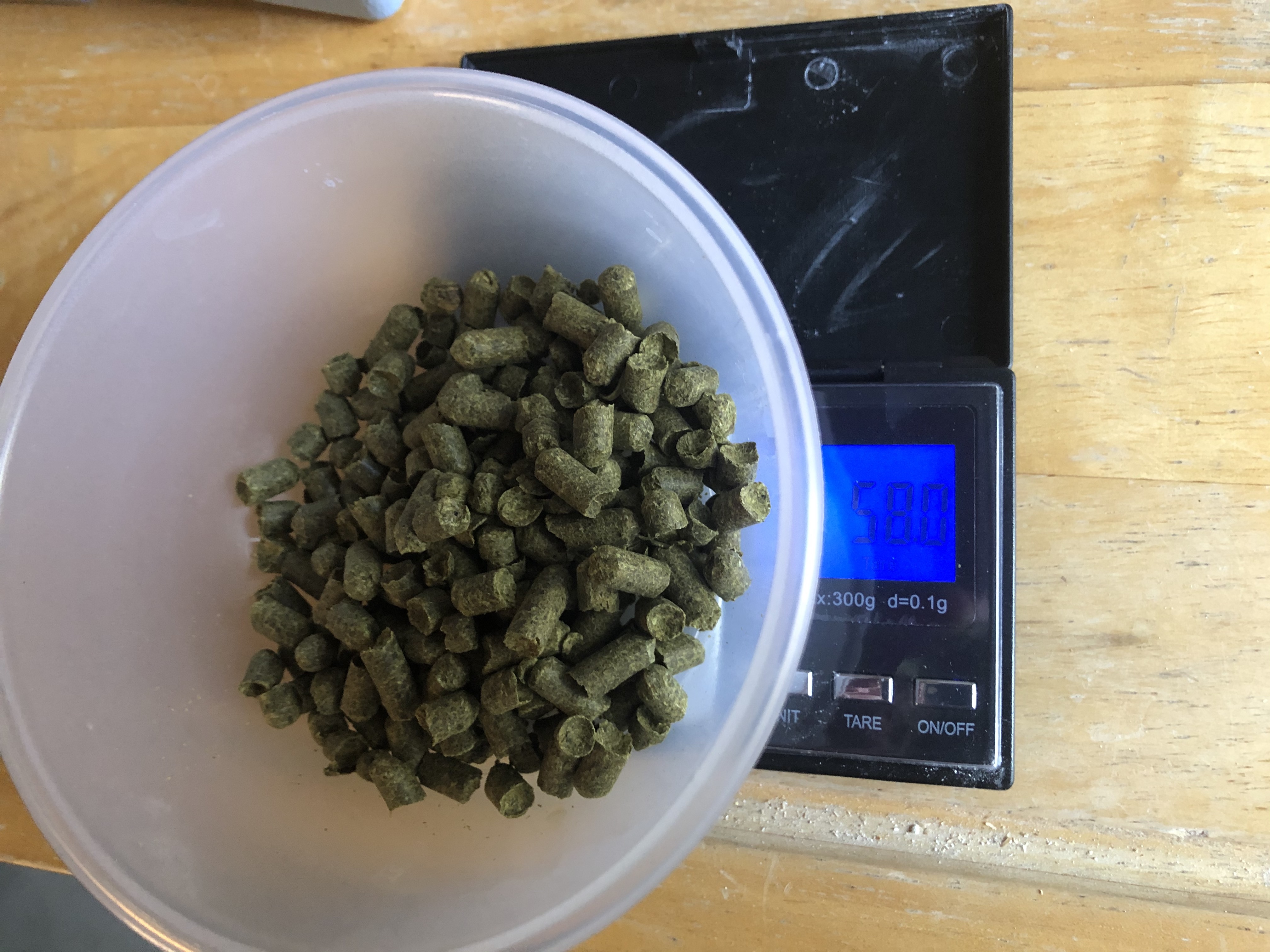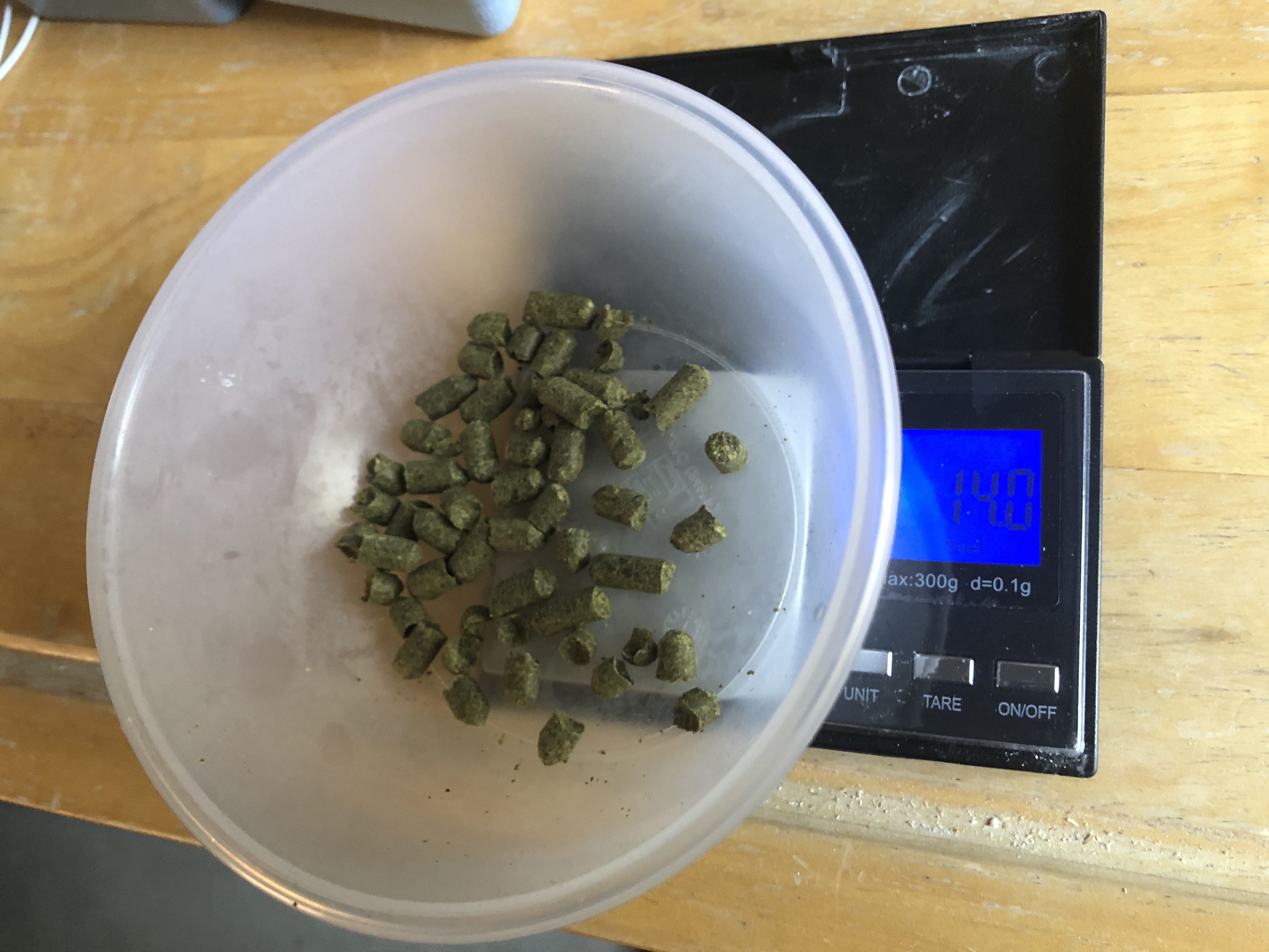 Nach dem Würzebruch dann die erste Hopfengabe. Bei 80 Minuten 58 Gramm Fuggles.