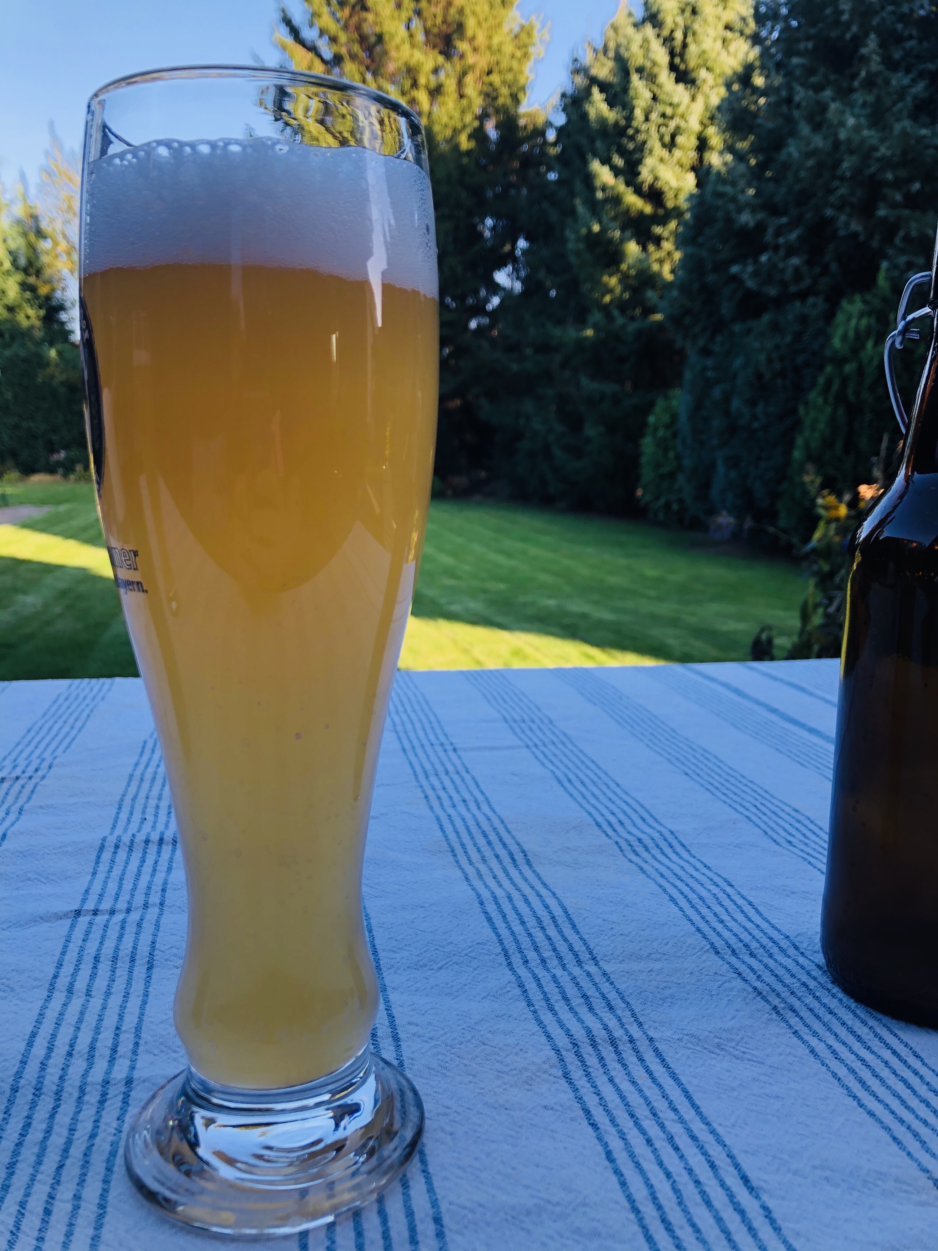 Zum Feierabend gabs dann erst mal ein "Ginweizen" bzw. ein belgisches Wit mit Wacholderbeeren. Natürlich eine frühere Eigenproduktion.