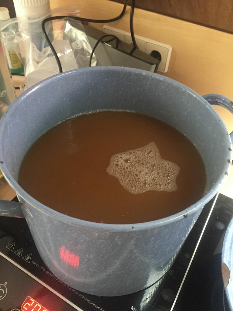 Der Rest ist zunächst unspektakulär, am Ende waren knapp 5l Würze mit 10,6 °P bereit zum Anstellen.