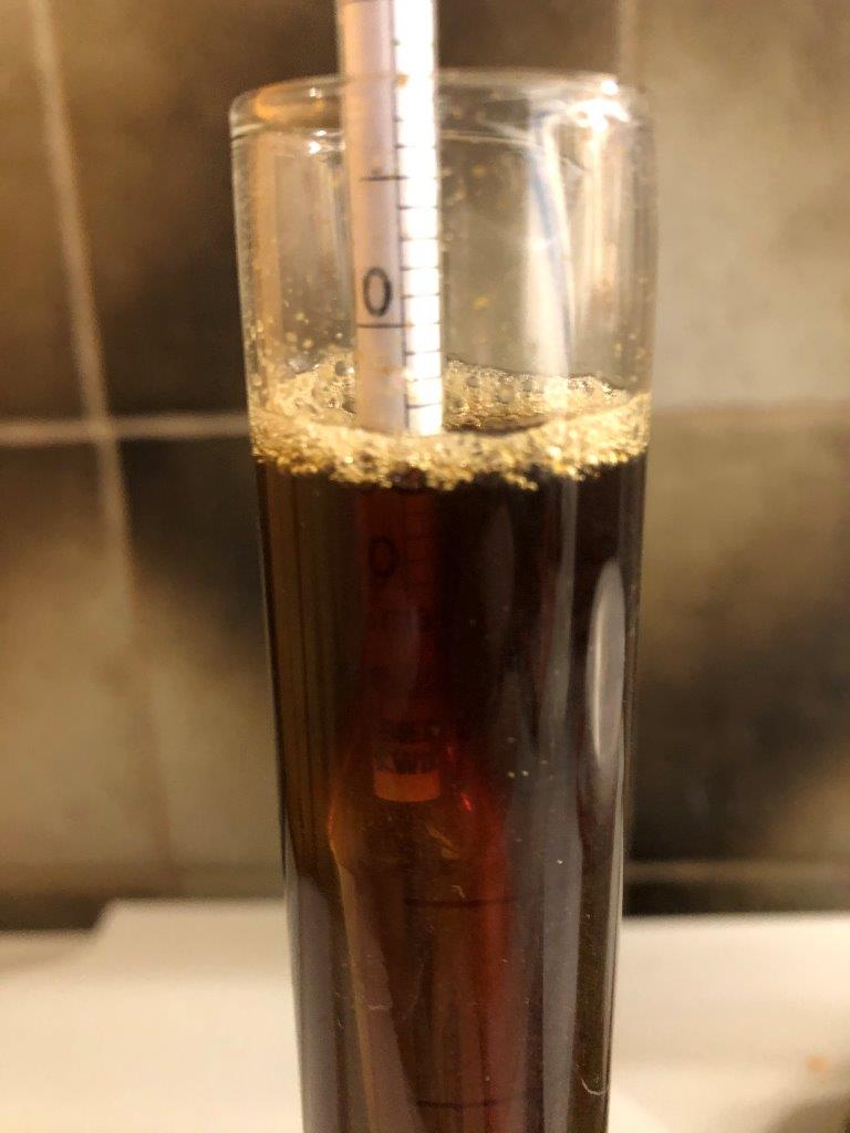 Am Ende bin ich bei 14°P, statt 13°P angekommen. Hab das jetzt nicht mit Wasser verschnitten, sondern so gelassen.