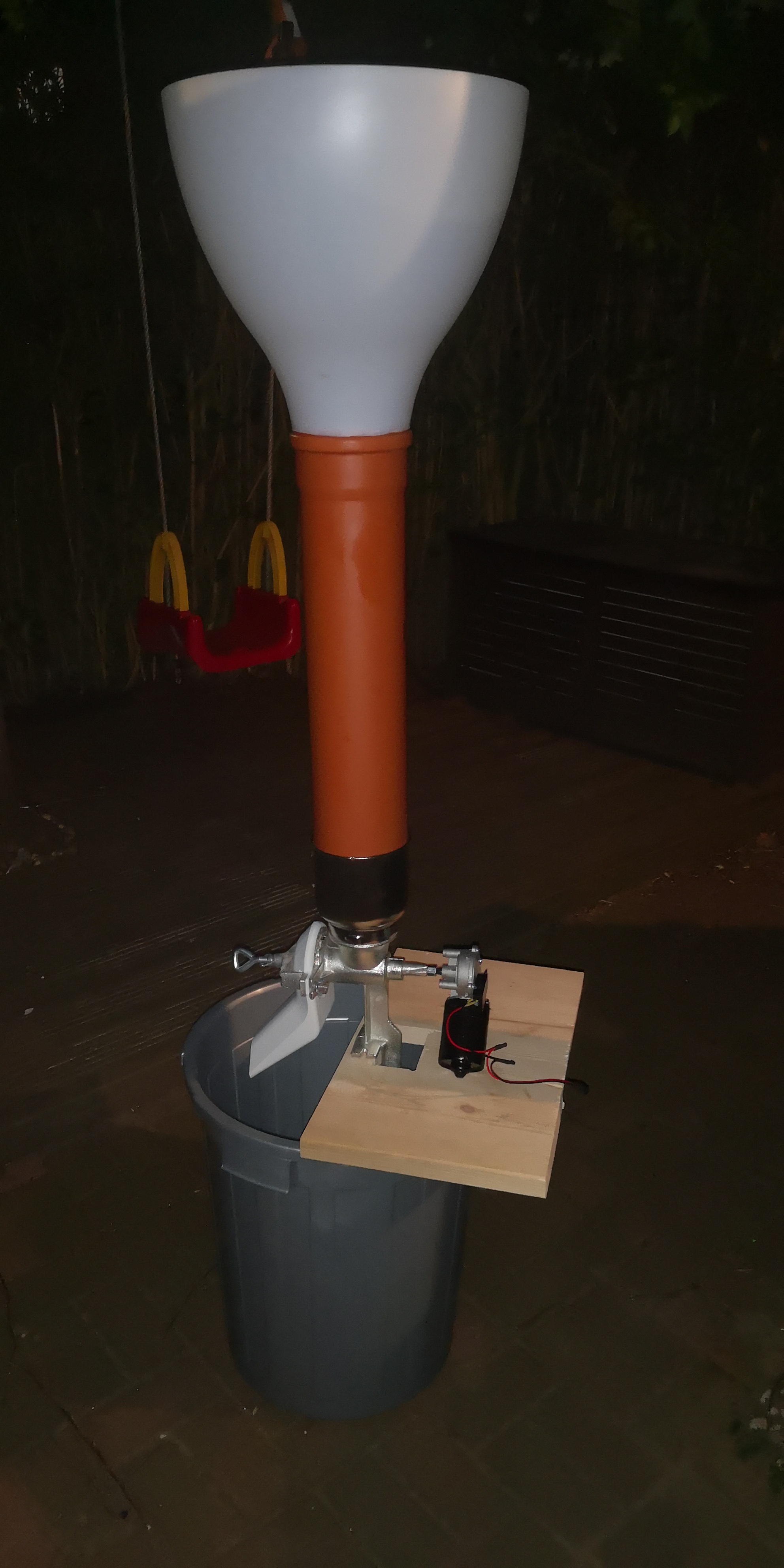 Ich hab die große Variante und hatte den Boden abgeschnitten. Dadurch war jetzt leider die Öffnung des Lampenschirms genauso groß wie der eigentliche Trichter. Hab es letztendlich mit einem KG Rohr DN125 gelöst, was super passt. Ich mache später mal ein Bild.