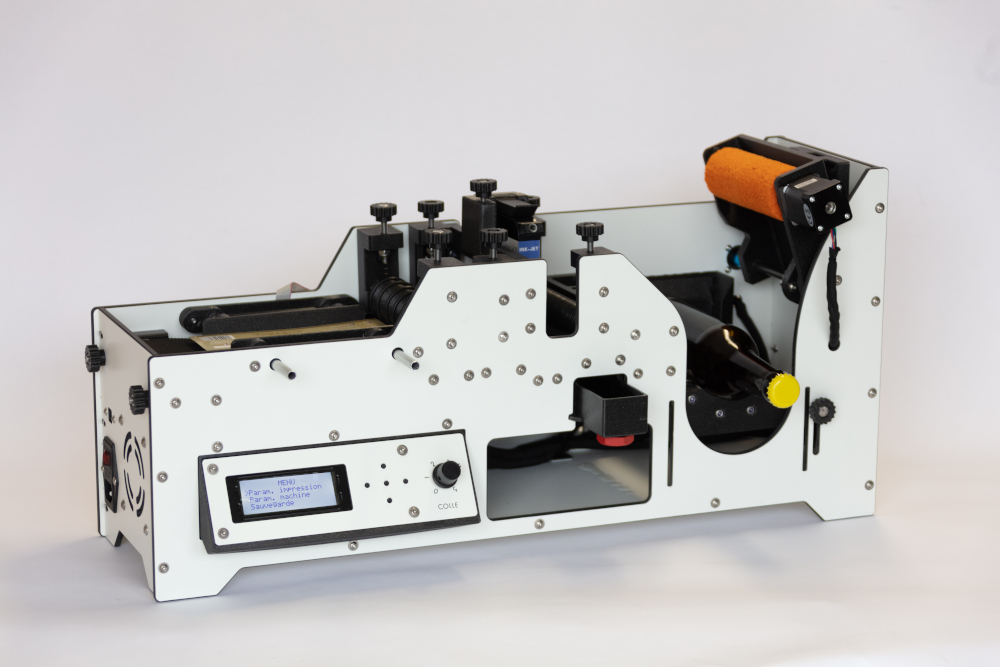 ich habe in den letzten Wochen etwas gebaut, das für dieses Problem etwas weiterhelfen könnte. Die Schwierigkeit, Etiketten zu vereinzeln, lässt sich mit einem sogenannten Reibanleger lösen. Hier sind ein paar Bilder meiner Konstruktion. In einigen Wochen wird es ein Video über den Bau der Maschine geben. Der nächste Schritt, den ich plane, wäre eine weitere Maschine danach zu schalten, um die Etiketten auf die Flasche zu bekommen. Dazu muss ich jedoch noch einige Nächte darüber schlafen. Es wäre sehr schade, wenn dieses Projekt einschlafen würde. Ich plane eine günstige Lösung mittels 3D-Druck zu realisieren. Das erste Problem des Vereinzelns wäre gelöst. Ich habe nun schon einige Etiketten getestet und es funktioniert so gut wie fehlerfrei. Eine Frage hätte ich jedoch: Welches Papier und welchen Kleber soll ich verwenden? Auf Milch möchte ich verzichten. Es wurde hier von Kleister geschrieben. Am liebsten wäre mir Wasser.