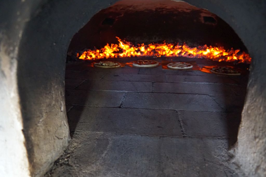 10.20 Uhr Ofen eingeschürt und Pizza gemacht. Nach der Pizza wurde der Ofen nochmals nachgeheizt.