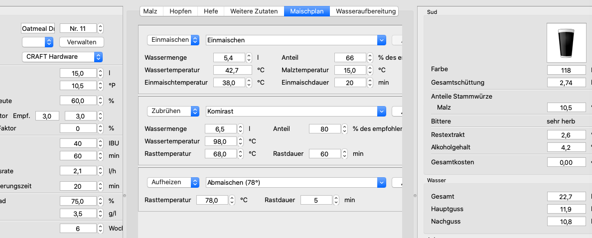 Zu 2) ok, das kannst du mit zubrühen machen. Beachte einfach noch die Hauptgussmenge. Bei deinem Bild bist du bei 146% der empfohlenen Menge. Die Nachgussmenge wird automatisch angepasst, aber man muss das trozdem im Auge behalten.