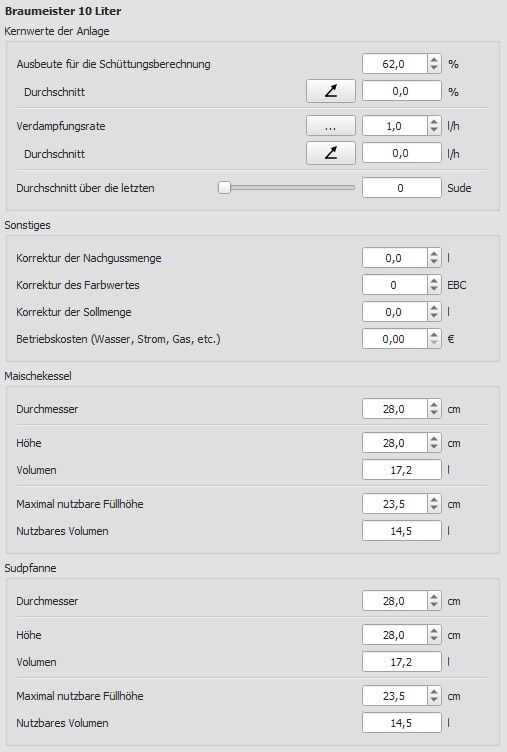 Was mich im ersten Moment allerdings irritiert hat, ist dass die hinterlegten Brauanlagen Settings für die Braumeister 10 scheinbar nicht viel mit der Realität zu tun haben. Habe nun einige Daten wie Maße und Co selber korrigiert (bei den Maßen ist ja einfach).