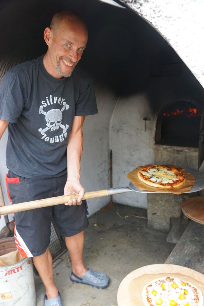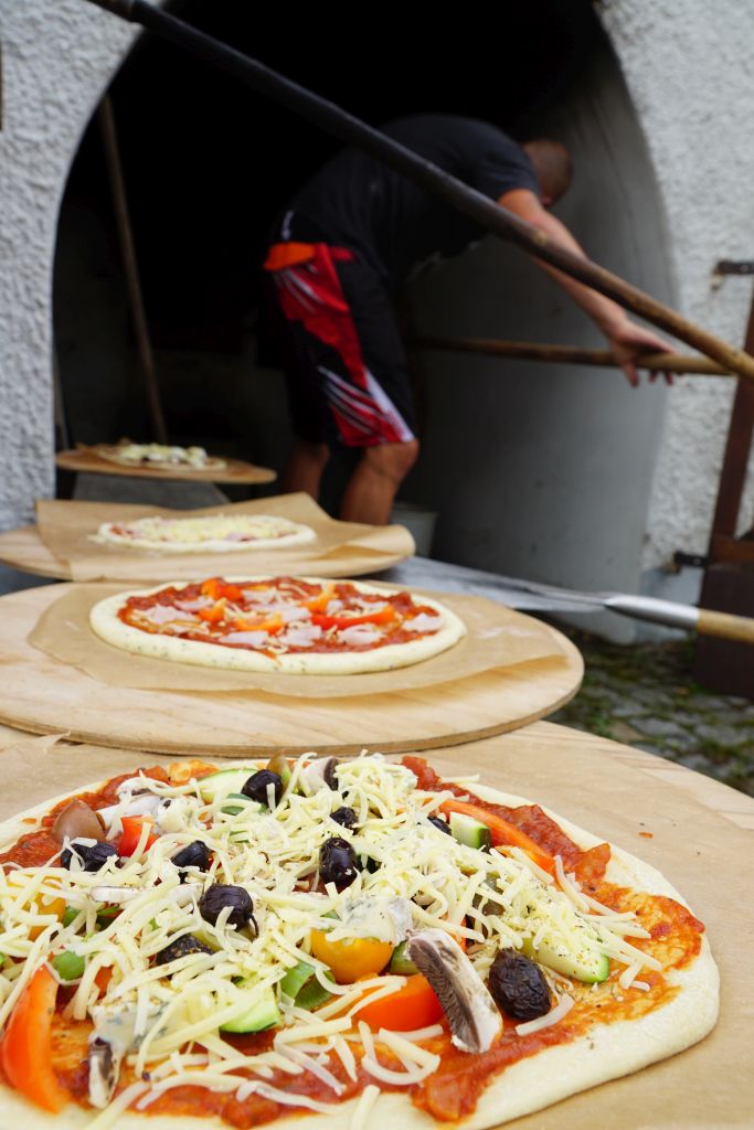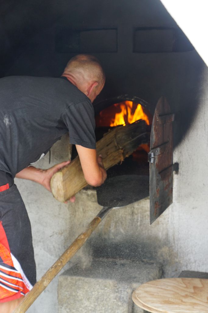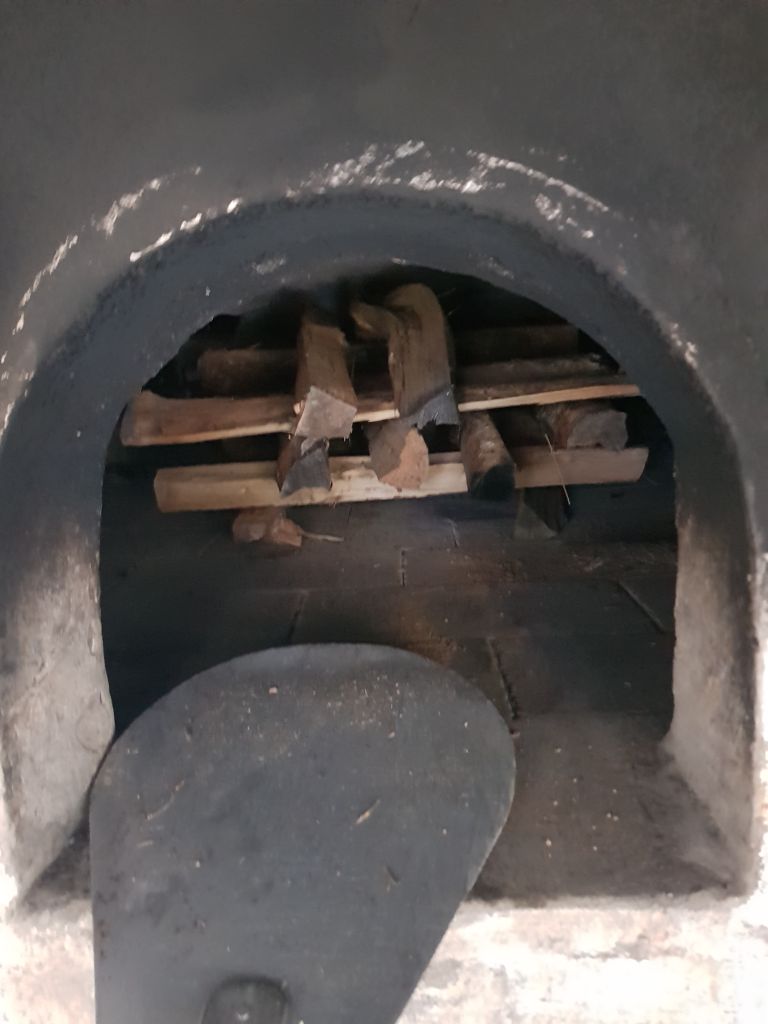 10.20 Uhr Ofen eingeschürt und Pizza gemacht. Nach der Pizza wurde der Ofen nochmals nachgeheizt.