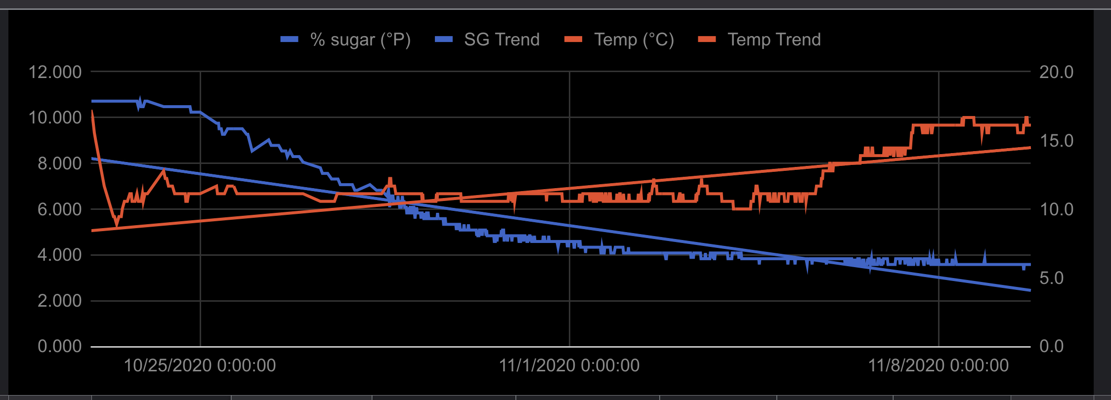 wenn ich den Verlauf bei meiner Spindel sehen würde, gäbe ich der Gärung noch 2-3 Tage. Nur am Rande: hast Du bei 20° gemessen oder die Abweichung für Deine Temperatur berechnet?