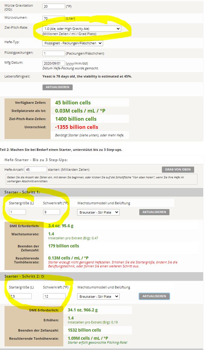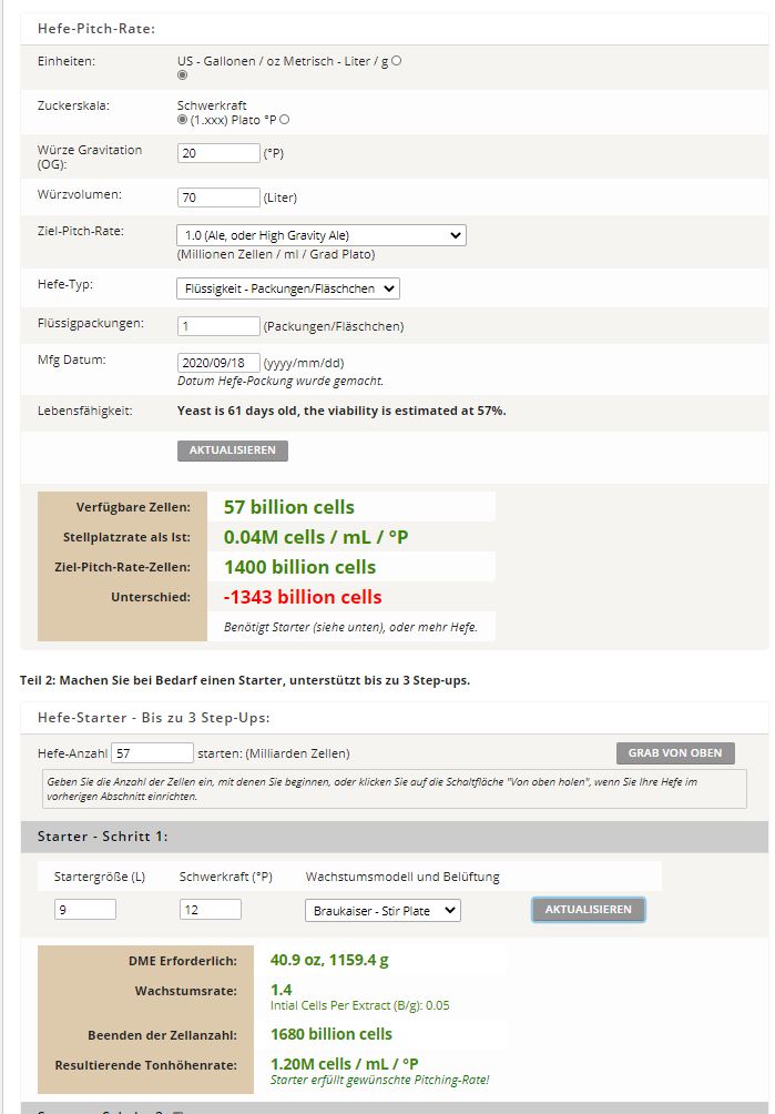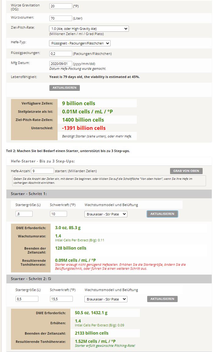 Auch dies lässt sich gut rechnenDerDerDasBierBraut hat geschrieben: Mittwoch 18. November 2020, 16:43 Versuche mal einen dreistufigen Starter mit ansteigender STW zu rechnen. Dann hat die Hefe Zeit, sich an den osmotischen Druck zu gewöhnen.