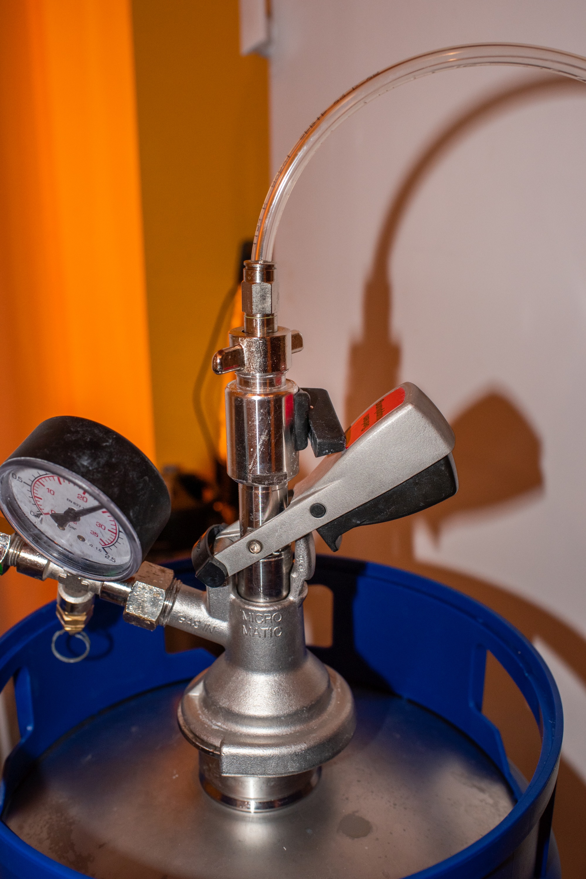 Anfangs der Gärung war ich noch stark verunsichert und hatte "mental" etwas ein Problem damit, dass ich keine visuelle Kontrolle über den Gärverlauf habe. Zudem hatte ich etwas Angst, dass das Gasventil bei zu starker Füllung/Gärung ev. verstopfen könnte. Nachdem aber die Gärung nun durch ist und der Tank bei gewünschtem Spundungsdruck in der Kühle steht, bin ich doch sehr zufrieden mit dem Ganzen und freue mich schon auf den nächsten Versuch, wo ich meine gewonnen Erkenntnisse gleich umsetzen kann. Der sehr ausführliche Beitrag von Felix hat mir dabei auch viele Fragen beantwortet, vielen Dank dafür!