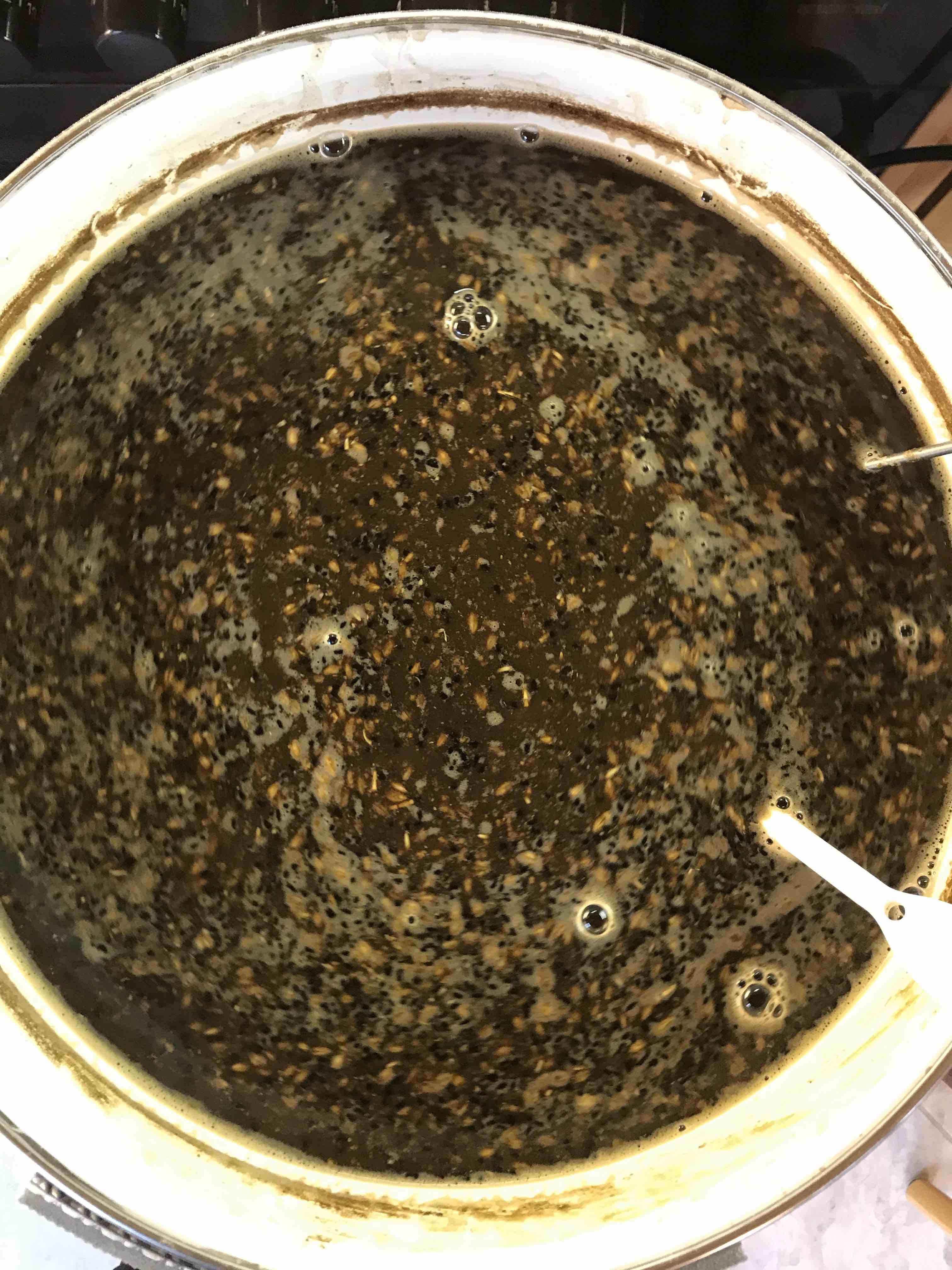 3. Sollte man die Würze nutzen die im Treber steht? Also komplett ablaufen lassen beim Läutern? Ich habe nur geläutert bis die Würze gerade unter die Oberfläche verschwunden ist, das kam mir aber irgendwie verschwenderisch vor. Wenn man's nicht zum Brauen nutzt, kann man was anderes mit der Würze machen? Ich habe etwas davon in mein Treberbrot getan was ich heute gebacken habe - mal sehen wie's wird!