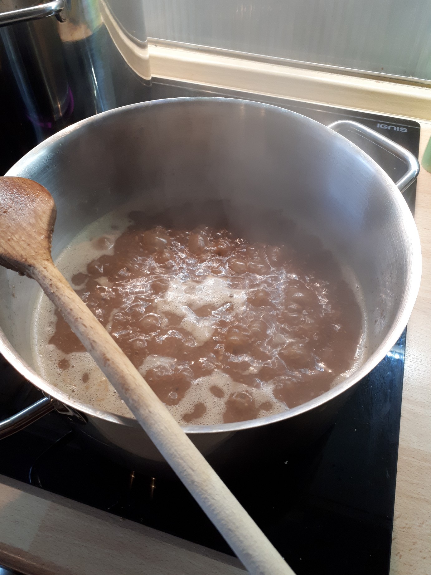 Heute ein fruchtiges Brown Ale, schon kurz vor dem Kochen