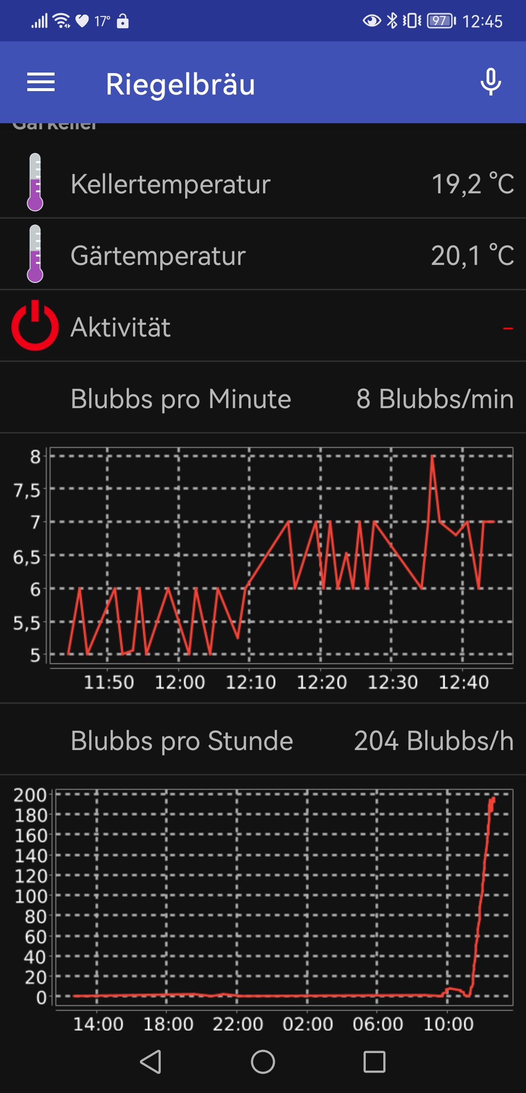 Damit ist es mir möglich die Temperaturführung aus der Entfernung zu überwachen und zu steuern. Über den Blobzähler kann ich erkennen ob die Hefe angekommen ist und ob die Gärung zu einem Ende kommt. Ich mache mir nicht die Illusion, dass ich damit eine genaue Aussage über Restzucker, etc. bekommen kann. Aber es reicht aus um halbwegs sicher zu sein, dass alles nach Plan läuft. Meist stellen wir zur Beruhigung der Nerven eine WebCam dazu.