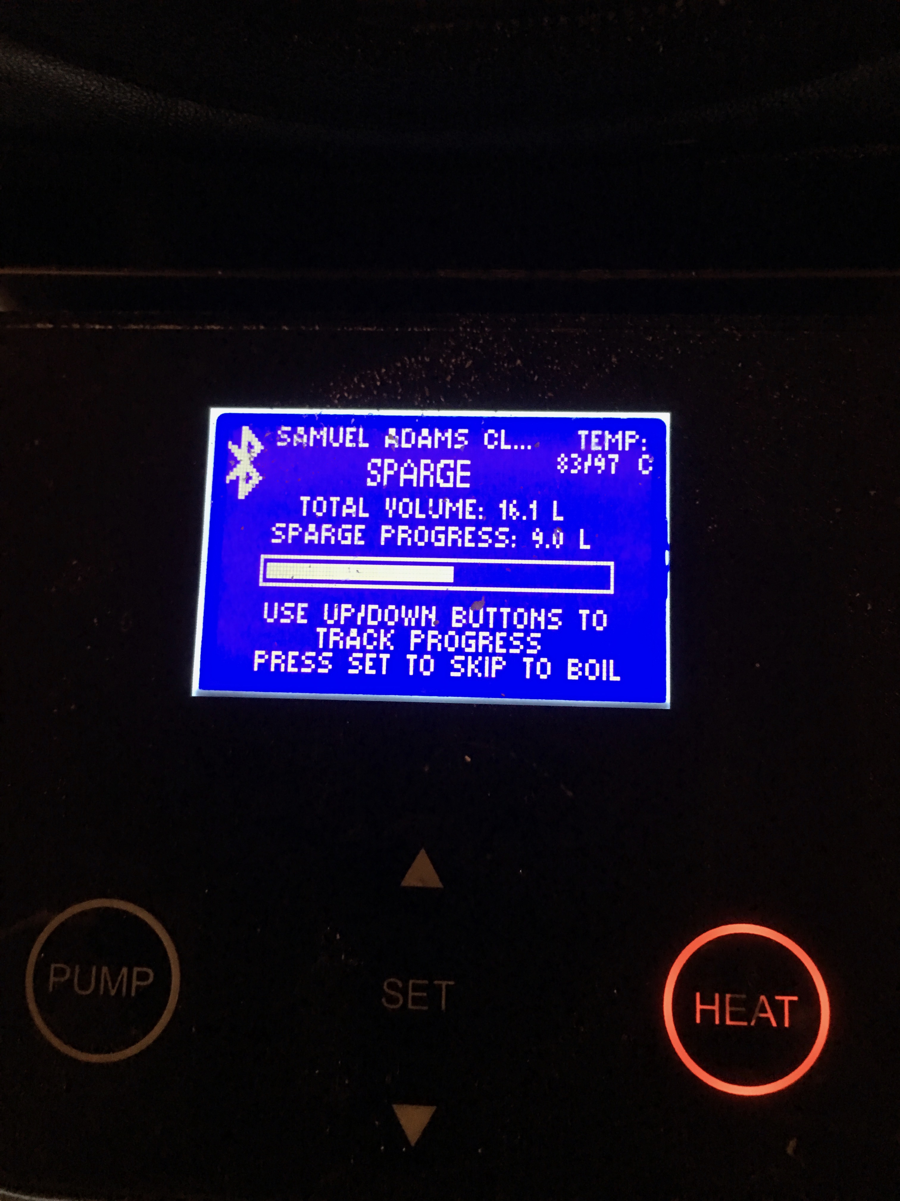 Das Maischeprgramm läuft ruhig vor sich hin, in der Zwischenzeit hab ich die Pumpe langsam auf vollen Durchlauf gestellt ...