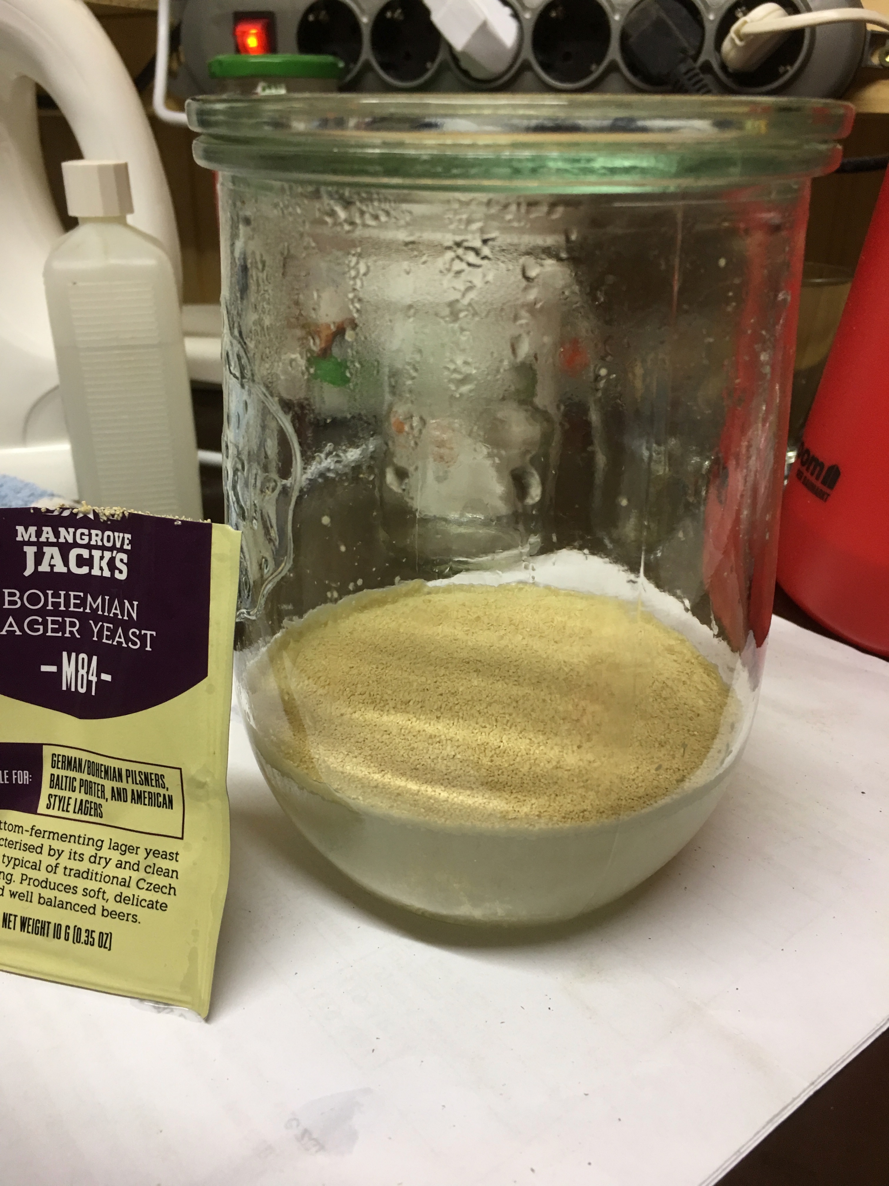 Als Hefe musste ich auf Trockenhefe zurückgreifen, und hab die Mangrove Jack M84 Bohemian Lager genommen, da im Rezept auch eine Bohemian Lager Hefe verwendet wurde....