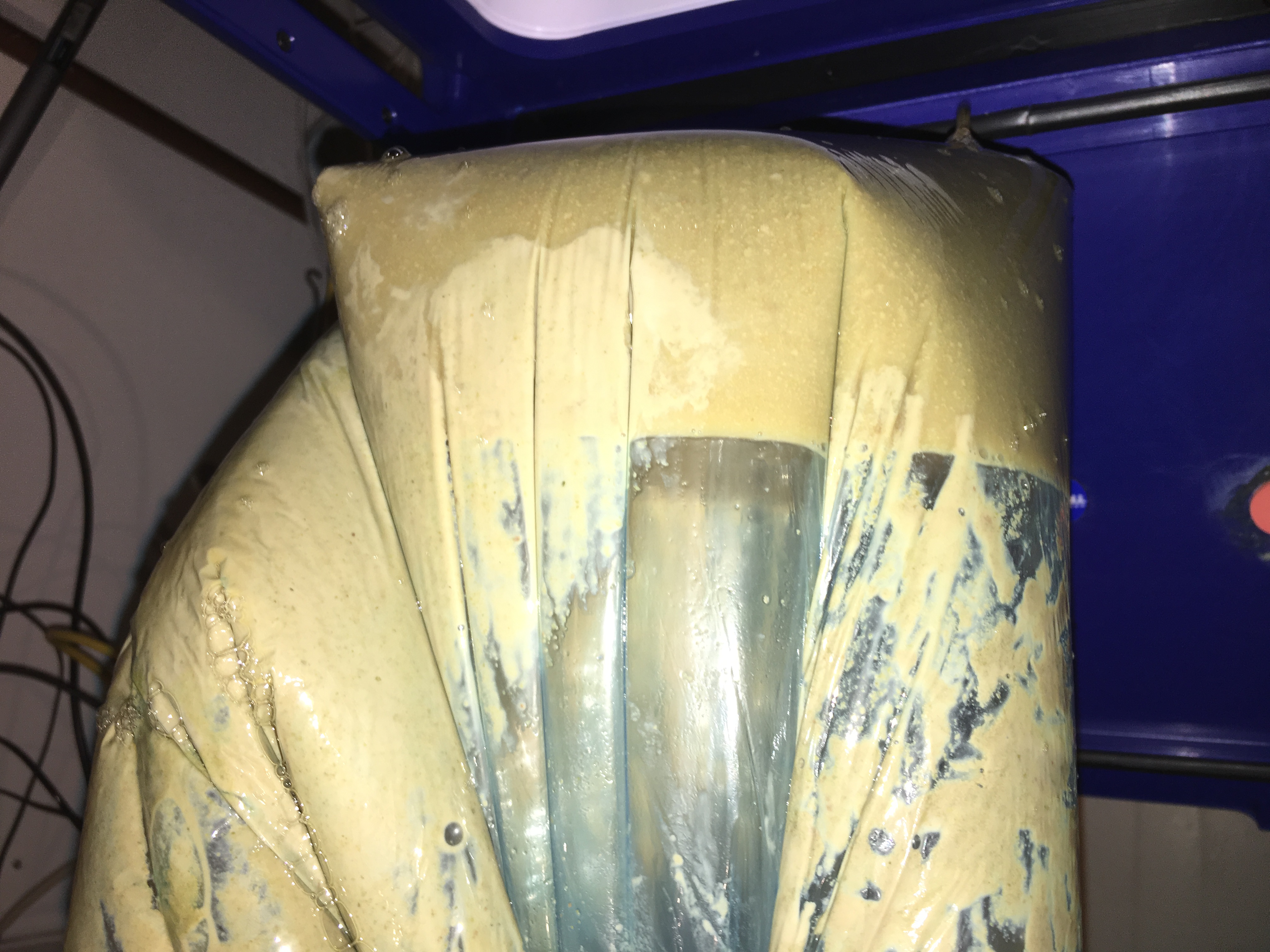 Dann werde ich für diesen untergärigen Sud zum ersten mal meine Gärkühlbox benutzen und diese muss auch vorbereitet werden... den Lebensmittel echten Plastiksack habe ich in Starsan eingelegt und mit diesem wird die Kühlbox jetzt ausgekleidet...leider konnte ich nicht herausfinden ob die Kühlbox "lebensmittelecht ist" also blieb nur diese Lösung ...
