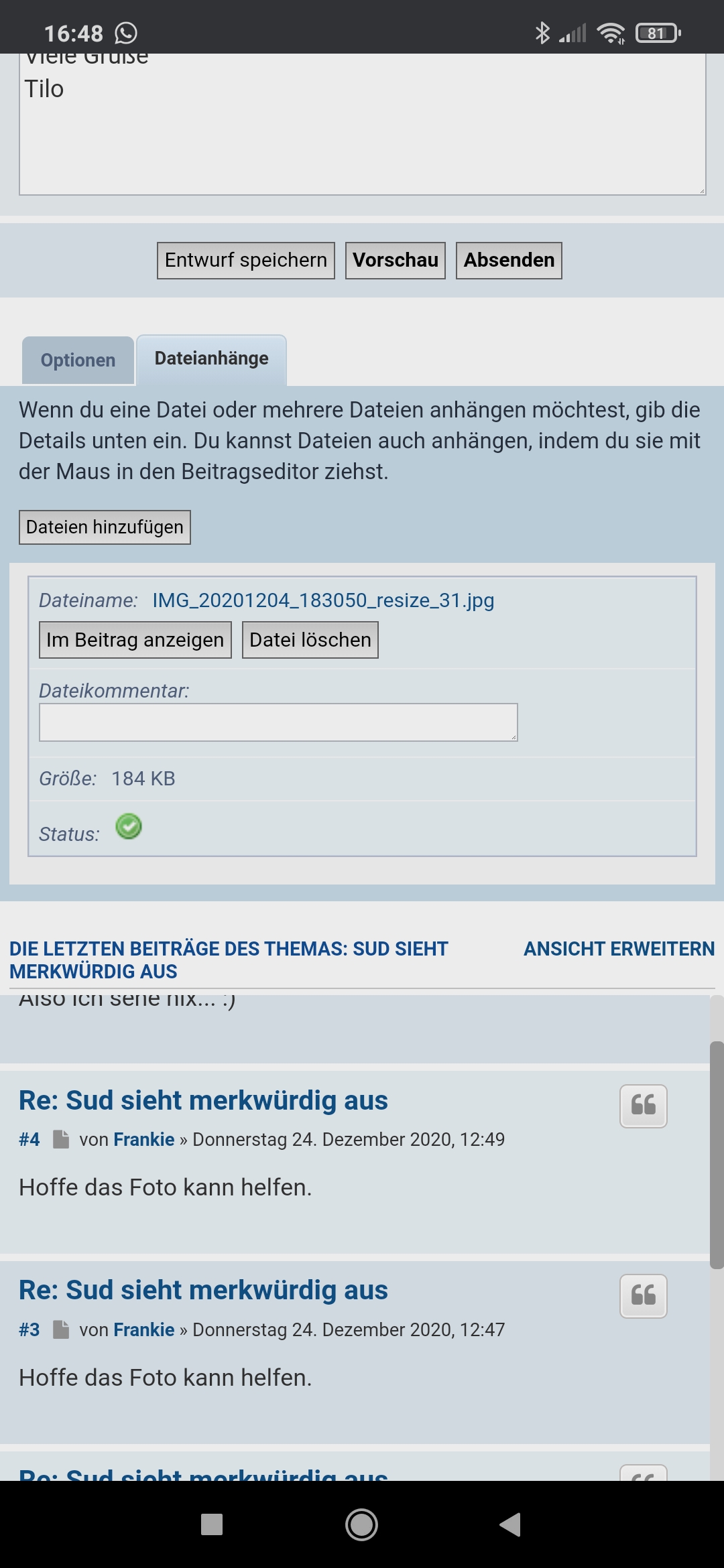 Wenn du das Foto erfolgreich hochgeladen hast - Haken bei Status ist grün - musst du noch Haken bei "im Beitrag anzeigen" setzen bzw. den Button klicken damit wir es sehen können.