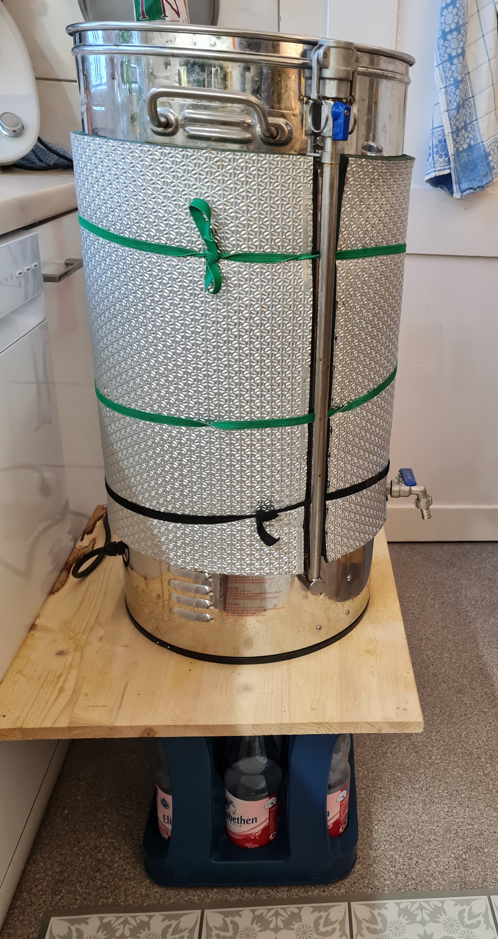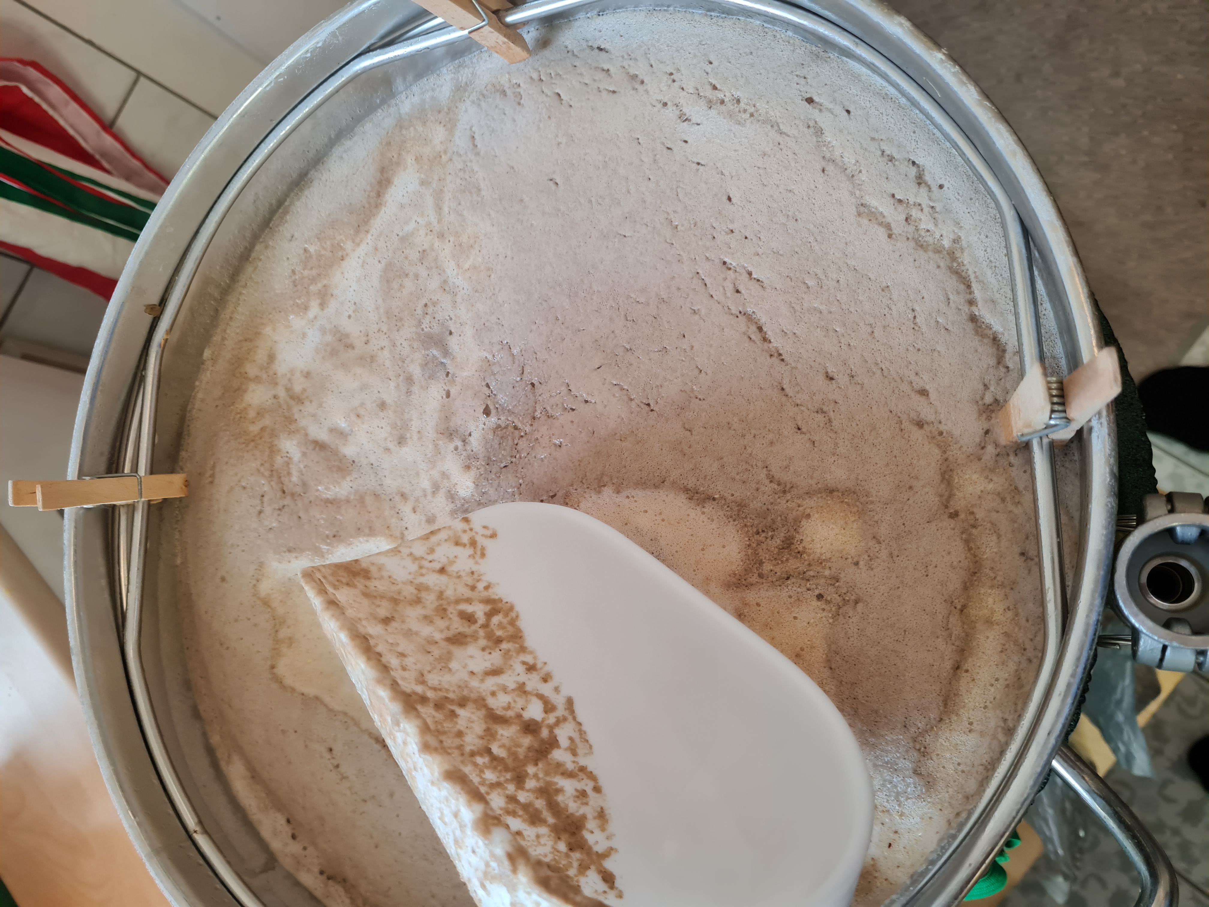 Kleine Anekdote: Die Fässer habe ich gebraucht von einer Fruchtmosterei erstanden. Darin wurden Beerenweine angesetzt, deren „Geist“ man auch immer noch erahnen kann, wenn sie trocken stehen. Von Außen waren die beim Kauf etwas ranzig und abgescheuert: Halb so wild. Innen waren sie optisch sauber, ABER unter jeder Dichtung schwarzer Schimmel! So genau hatte ich beim Kauf nicht nachgesehen und das erst zu Hause bemerkt. Im Endeffekt habe ich jedes Fass 3 mal über Nacht mit Koregatabs von innen gereinigt, dann mit Oxi, zur Sicherheit noch Zitronensäure und sowieso alle Dichtungen erneuert. Im Endeffekt hätte ich sie auch neu kaufen können… Lesson learned: Nur weil jemand einen Betrieb hat, ist noch lange nicht gesagt, dass es sich auch um Profis handelt. Jedenfalls habe ich die Flasche Holunderbeerwein, die ich bei der Gelegenheit gleich mit erstanden hatte gar nicht erst probiert. Hat wahrscheinlich seinen Grund, warum die Mosterei schließen musste…
