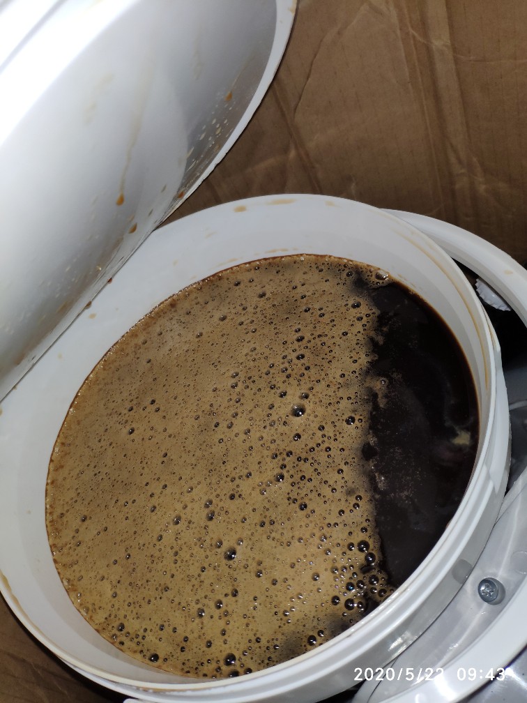 Die Schnellvergärprobe ist bei einem Refraktometerwert 6,5 Plato stehengeblieben. Die Gärbehälter sind jetzt bei 7. Also fast geschafft. Am Wochenende geht es ins Keg. Davon 20 Liter normal und 10 Liter mit ein paar Whisky- oder Rumcubes. Mal sehen.