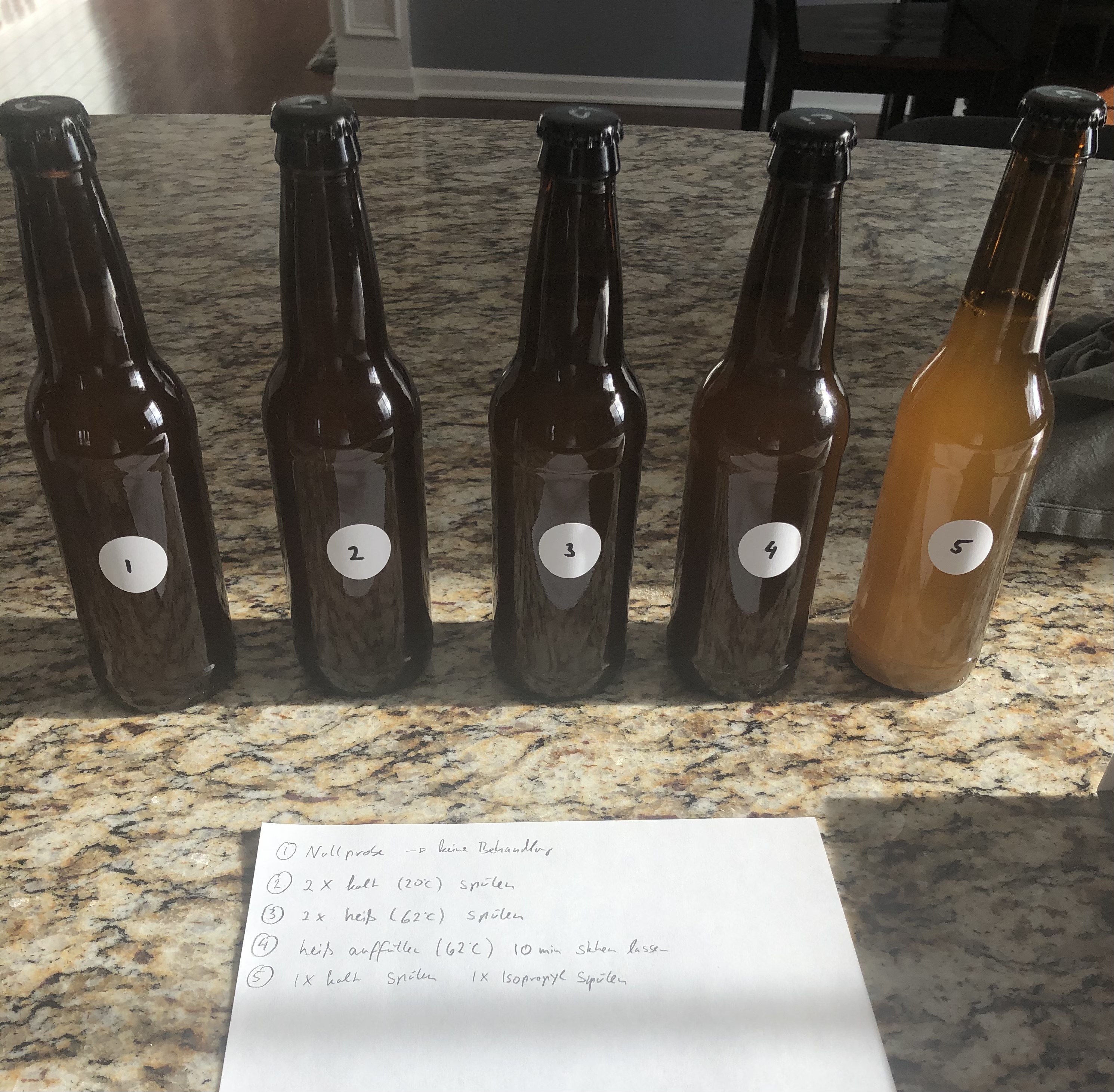 Im Forum und im Netz findet man so ziemlich Alles, von "abtropfen lassen reicht" bis "ich nutze Napalm". Nur was ist denn im Rahmen eines Hobbybrauers sinnvoll? Ich hab dazu eine kleine Versuchsreihe aufgesetzt.