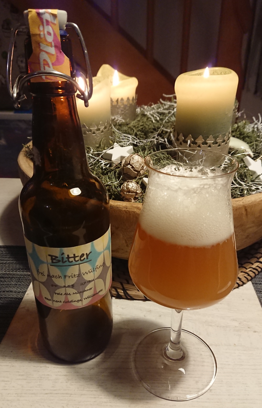 Ein obergäriges Bier mit Fuggles und Golding als Hopfen. Extrem schaumstabil. Die Krone steht im Glas wie angenagelt. Die Farbe ist dunkelgolden bis Bernstein mit einer guten Trübung. Der Geruch war würzig und zugleich leicht fruchtig. Etwas Hefe schwingt mit. Im Antrunk zeigt sich eine schöne Rezenz. Angenehm prickelnd und erfrischend. Der Geschmack ist hefig und leicht malzbetont mit einer angenehmen Bittere im Angang. Schönes Mundgefühl und ein guter Körper. Es klingen erdige Töne und eine leichte Säure nach. Die Frucht des Geruchs zeigt sich im Geschmack nicht. Das ist aber nicht schlimm, da das Bier so extrem süffig ist und eine wahnsinnige drinkability aufweist.