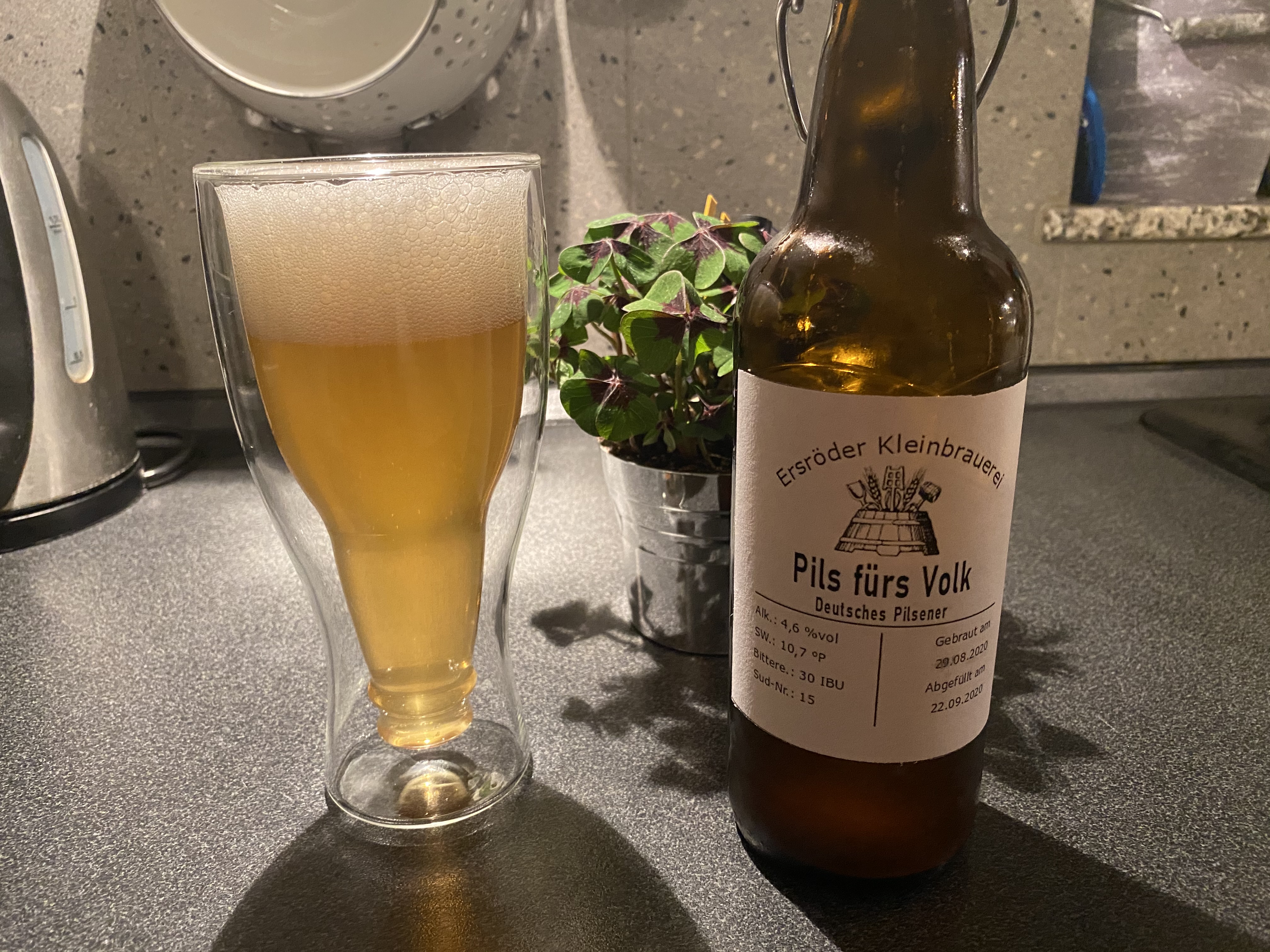 Das Pils besticht mit herrlichem Schaum, einer kräftigen Hopfen-Nase und einer schönen goldgelben Farbe.