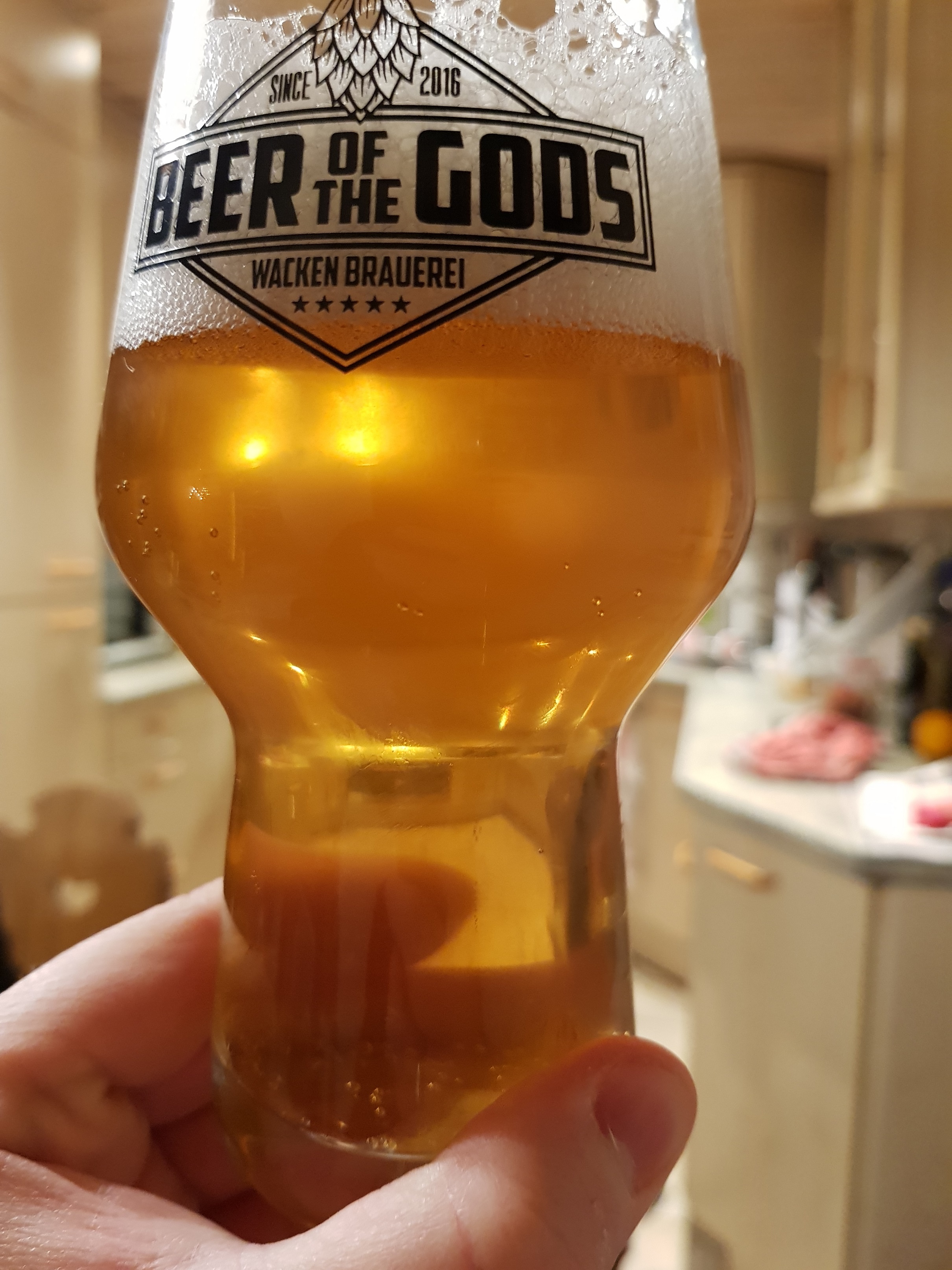 Meine erste Berührung mit Kveik bislang. Farblich leicht trüb, vielleicht durch die Kühlung, aber leuchtend göldlich gelb.