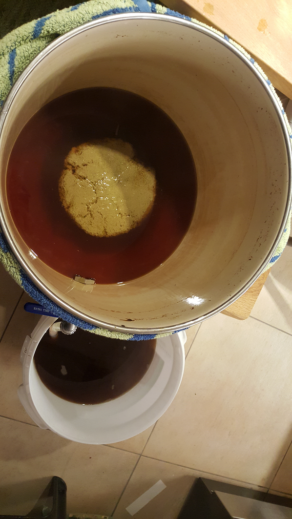 Bei meinen ersten Suden ist immer das Gefäß für den Trub übergelaufen und ich hatte die Sauerei am Boden. Daher stelle ich den Topf zum zurück schütten immer in den Topf der Brauanlage. Seit dem ist mir aber auch kein Gefäß mehr übergelaufen :Pulpfiction