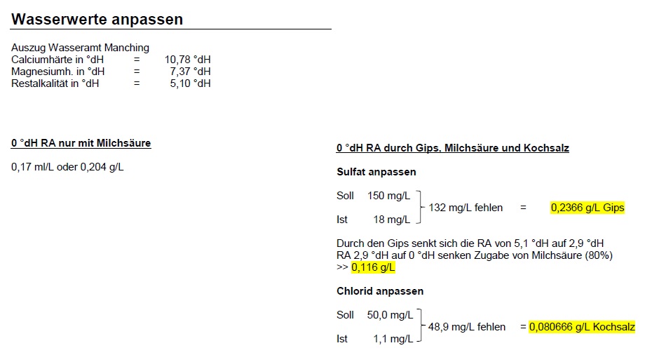 Aber: Bei Magnesium > 20 mg/l Vorsicht mit Braugips, lieber Calciumchlorid oder Ansäuern.