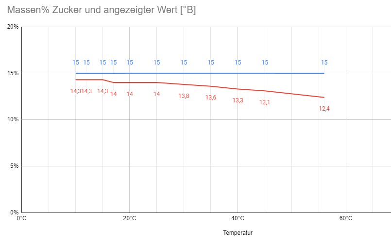 Man könnte ja mal einen Versuch machen mit 150g Zucker und 850 ml Wasser = 15 Plato und die Lösung bei verschiedenen Temperaturen mit dem Tilt und dem Refraktometer (und der Spindel) messen, eine Tabelle erstellen und dann ein Fleissbienchen abholen. Wäre sicher für viele Interessant.