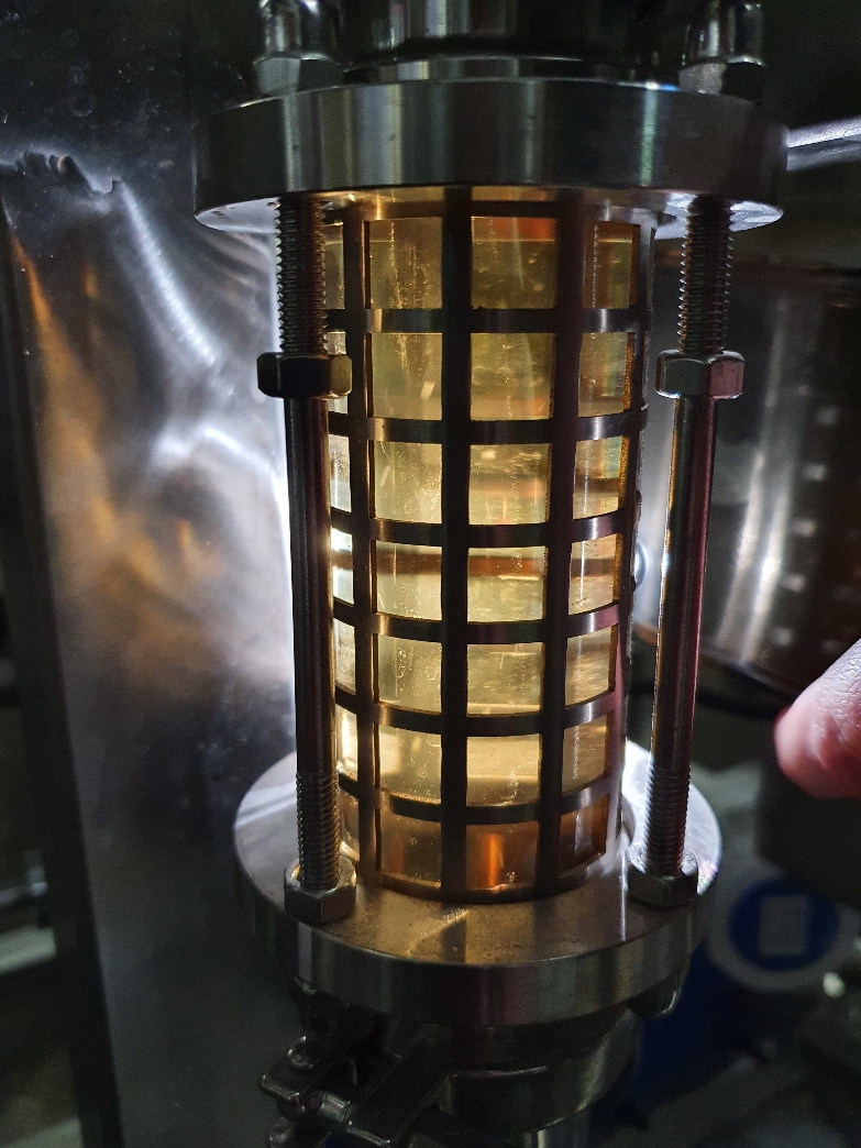 und ja.... es ist die erste Anlage gewesen :-))) ... und tatsächlich gäbe es sogar noch die eine oder andere mögliche Ausbaustufe... z.B. könnte die Anlage auf ein HERMS-System umgerüstet werden. Was die Malzmühle angeht so teile ich die Bedenken was den Staub angeht nicht wirklich... das Schroten passiert ja ganz am Anfang... und ab dem Maischen gibt es ja quasi keinerlei Kontakt mehr mit dem Staub... tatächlich ist aber die Mühle ein Schwachpunkt der Anlage. Es handelt sich dabei ebenfalls um ein Chinamodel was den Rollen her O.K. ist aber der Motor dreht wirklich sehr langsam. Das Schroten dauert gefühlt eine Ewigkeit und man muss es definitv parallel zum CIP-Reinigen vor dem Brauvorgang machen... :-) sonst dauert es...