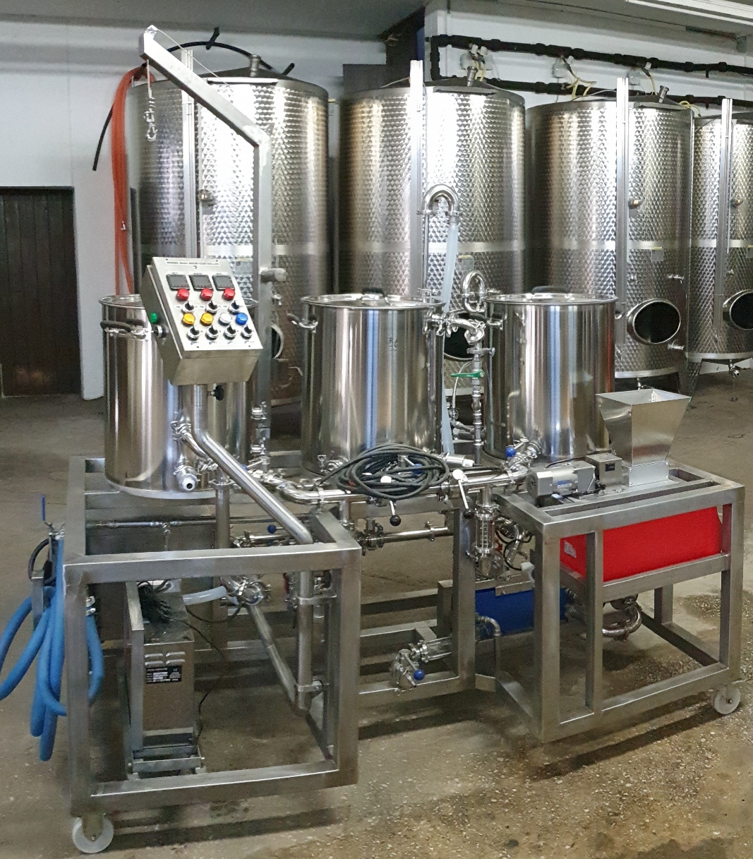 vielen Dank für die Blumen... also wie man aus den Tanks im Hintergrund richtig erkennen kann bin ich nicht ganz branchenfremd... zumindest was die Gärung angeht ;-)). Wir haben ein Weingut, die Brauanlage ist also wirklich reines Hobby! Tatsächlich habe ich noch nie vorher Edelstahl geschweißt und mich komplett da reinfuchsen müssen, ich habe mich von einer SS-Brewtech Anlage insprieren lassen und dann auf ebay angefangen Material wie Steuerungen und TriClamp Verschraubungen zu suchen...