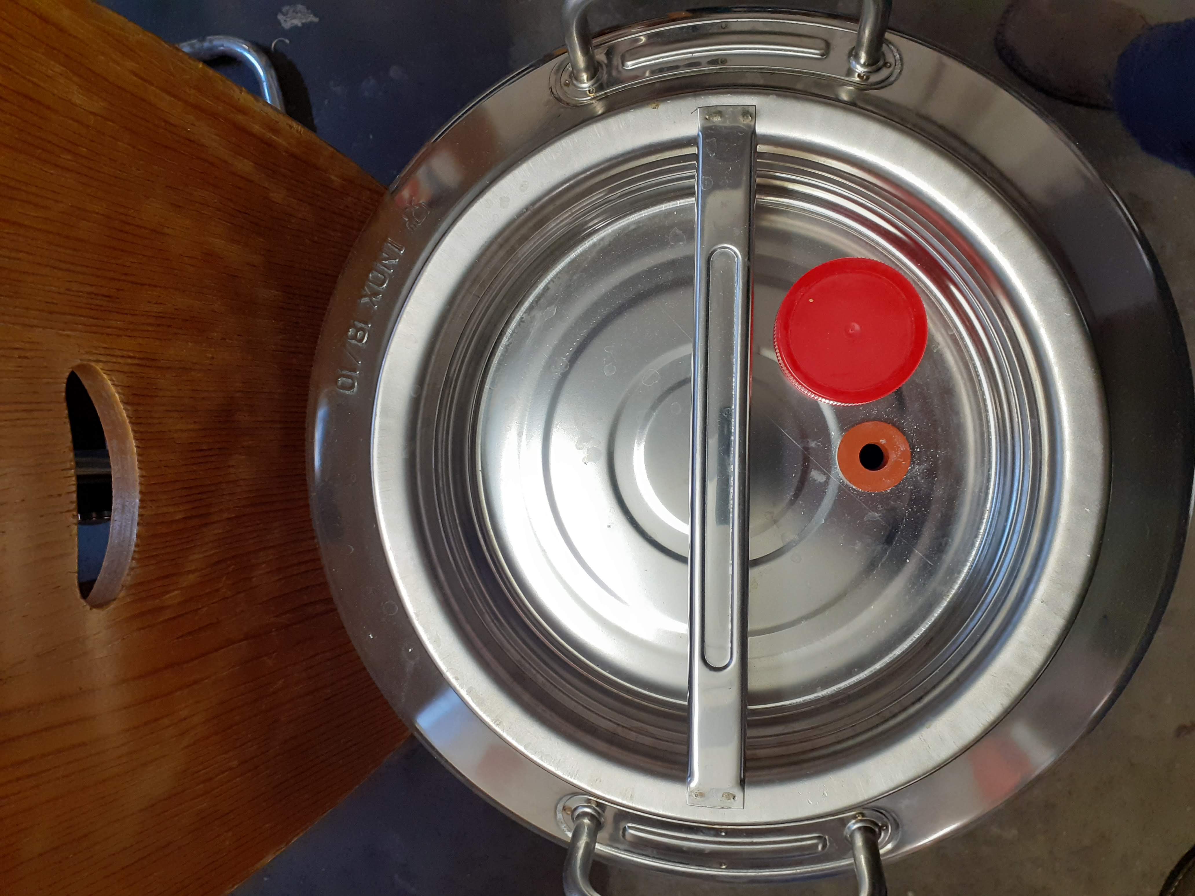 Bei meinem Gärbottich liegt der Deckel nur auf und somit hat der Sud den Deckel angehoben und ist an den Seiten schön runter gelaufen.