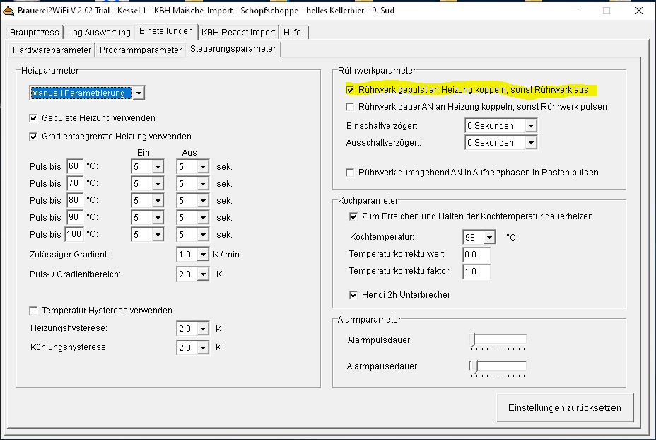 OK. Letzte Version läuft ohne DB-Fehler. Danke dafür! Einstellung füs Rührwerk hab ich so eingestellt. Bin gespannt wie der nächste Sud wird! Eine Frage hab ich: die gepulsten Intervalle 5/5 verwendest Du bei einem Induktionsfeld?